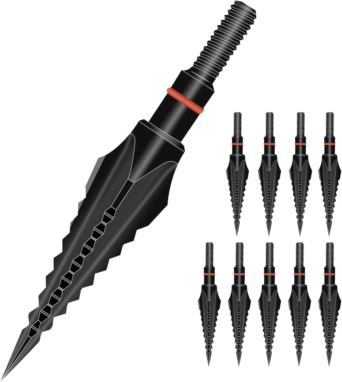 1 wrist bow release10 broadheads and 10 rubber rings are packaged in a plastic case,convenient to carry when going out.Screw-in arrow broadhead are suitable for various types of arrows, such as fiberglass arrows,carbon arrows, and crossbow arrows.Each arrow is equipped with one rubber ring to prevent the arrow from loosening.