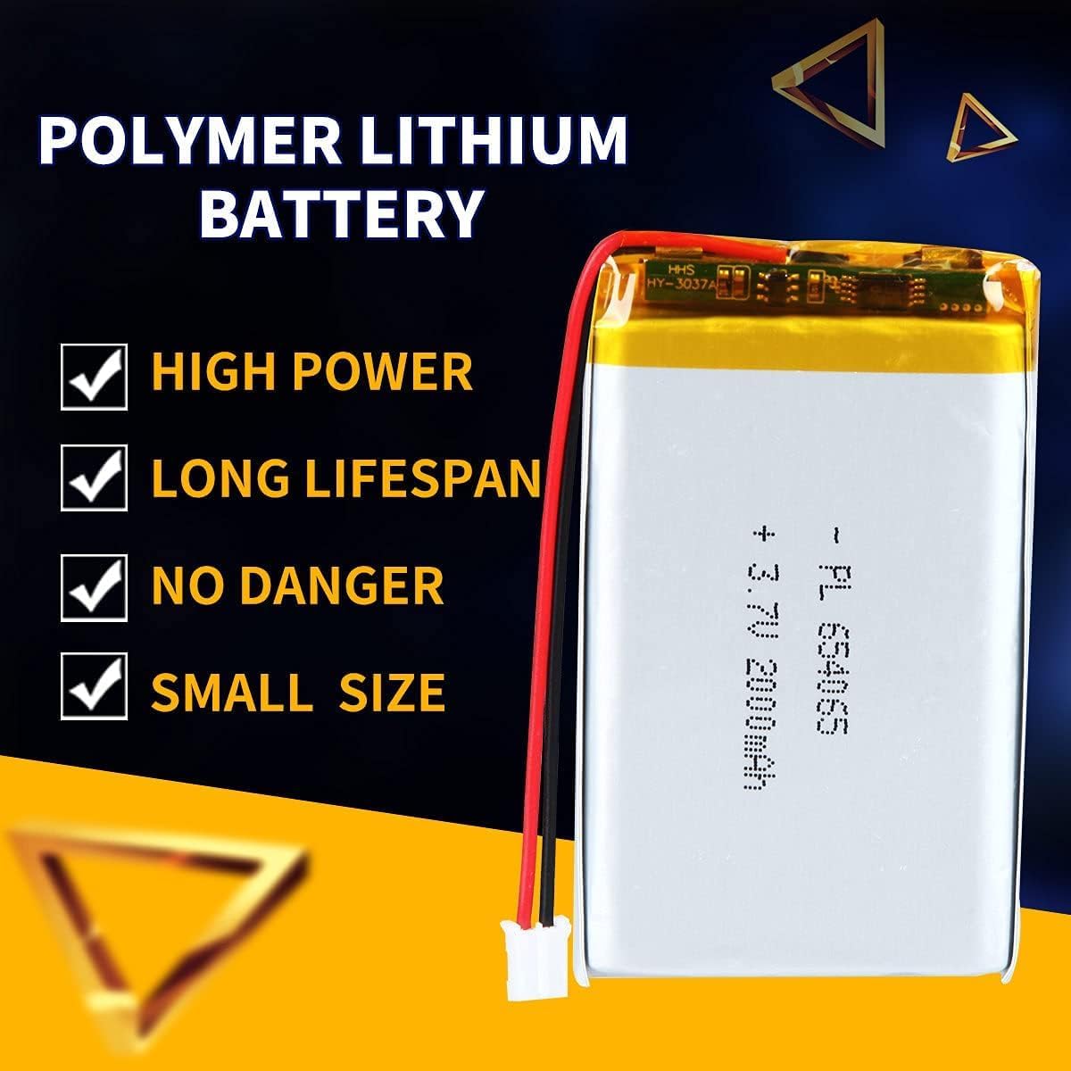 Warning: 1.Before use, please check the battery voltage, positive and negative polarity with the original battery, the opposite will lead to equipment damage. The red wire is the positive pole "+", the black wire is the negative pole "-". In some products, the original battery does not have a plug or the plug does not match, you can directly cut off the plug welding. 2.Our rechargeable lithium polymer ion battery connectors types are all JST PH2.0mm. Before ordering, please make sure the battery size and connector fit your battery. Note: Red connect "+" ,Black connect "-" ; the battery size has 1mm-3mm tolerance, In order not to damage the battery or shorten battery life, high voltage charging and incorrect connecting of the positive and negative pole is prohibited.Description:This battery is really the latest state of the art technology in rechargeable. It is extremely thin, light weight and super thin compared to any rechargeable chemistry.Low weight, small size but huge capacity.The other advantage of the Lithium Polymer technology is the very low self discharge . Long Cycle Life: Can be charged and discharged more than 500 times and still retain 80% of the original capacity. Built-in anti-short circuit, over-current device, safe explosion-proof and no bulging, in line with international safety standards. Applications: Suitable for MP3/MP4, bluetooth wireless headset,GPS,baby monitor, PSP controller, game boy, doorbell, skybell, smart watch,monitoring units, POS machine, dashcam,mobile power, bluetooth speaker, VR glasses,beauty devices, pet tracker,ring video doorbell etc.