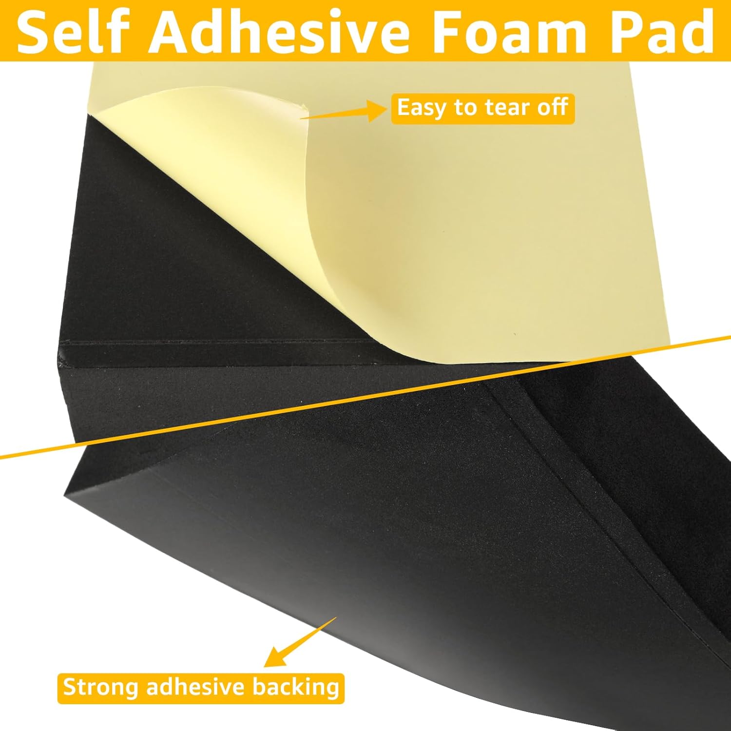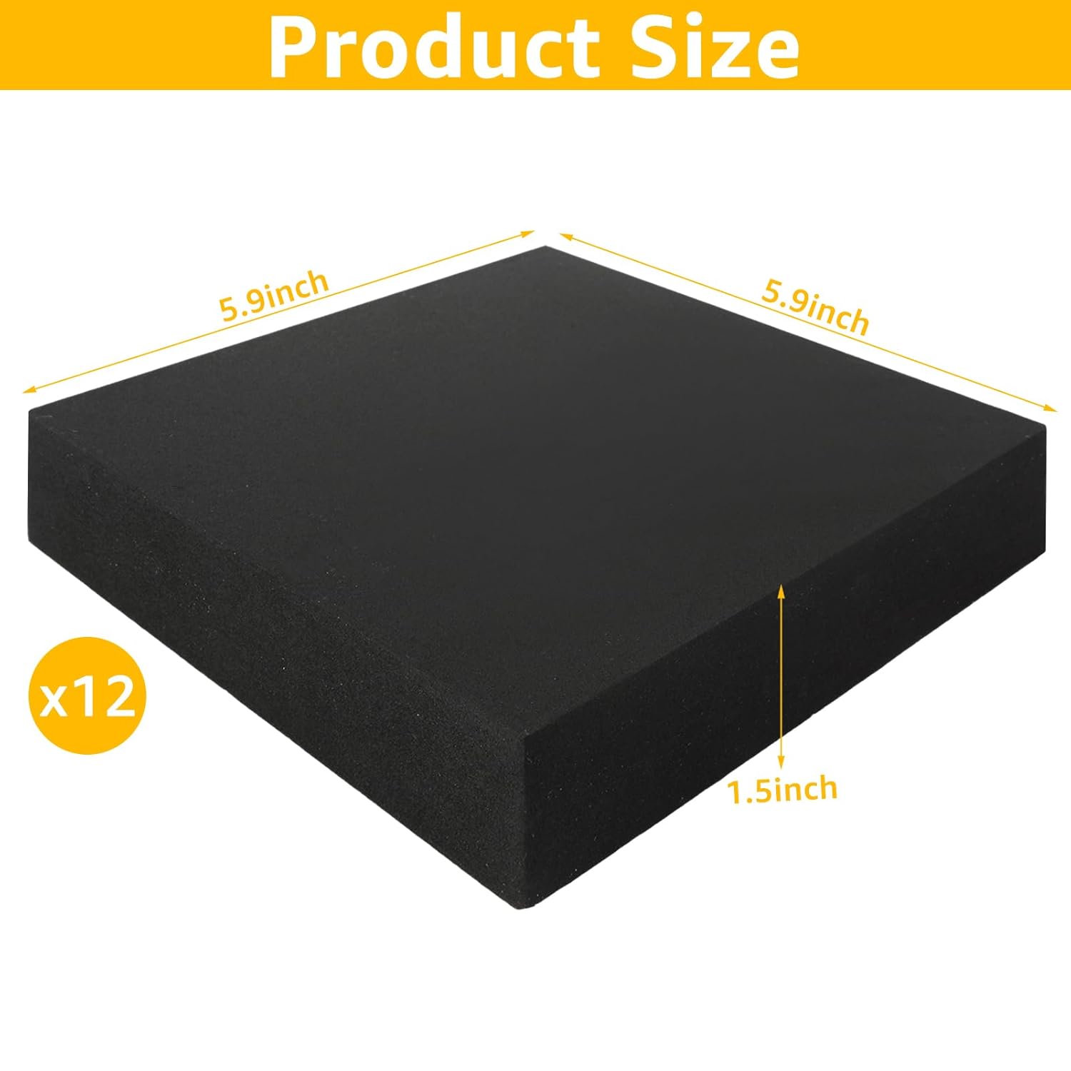 LDXDRU 12Pcs Adhesive Foam Padding, Closed Cell Foam Sheet, Black Foam Padding, Anti-Slip Foam Rubber Pads, Thick Anti Vibration Foam Pad 6 x 6 x 1.5 Inch