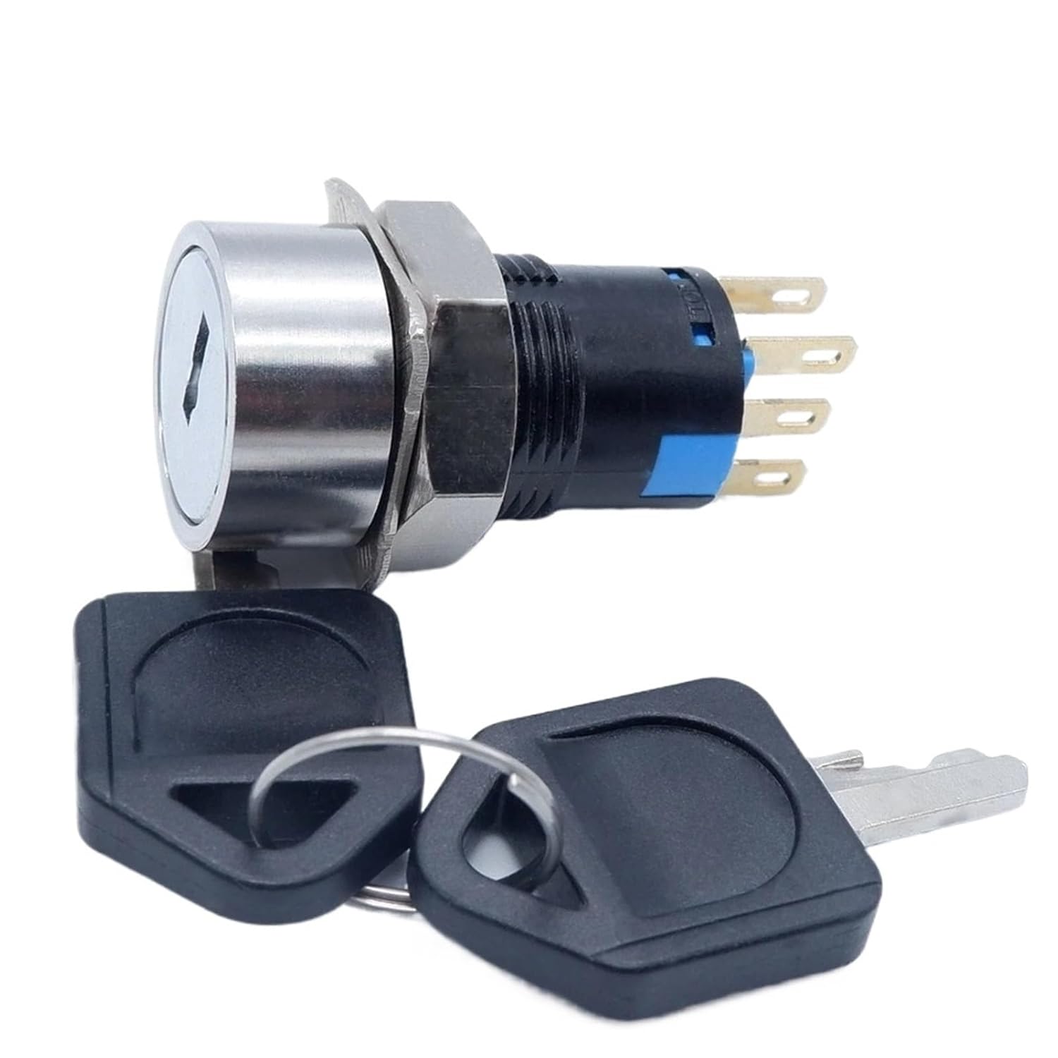 Key Switch==========Features : Key SwitchOpening Diameter : 16mmHead Material : Stainless SteelFunction : Self-locking FixationSwitch Type : 1NO1NC/2NO2NCCustomization : Yes , please leave a message to us