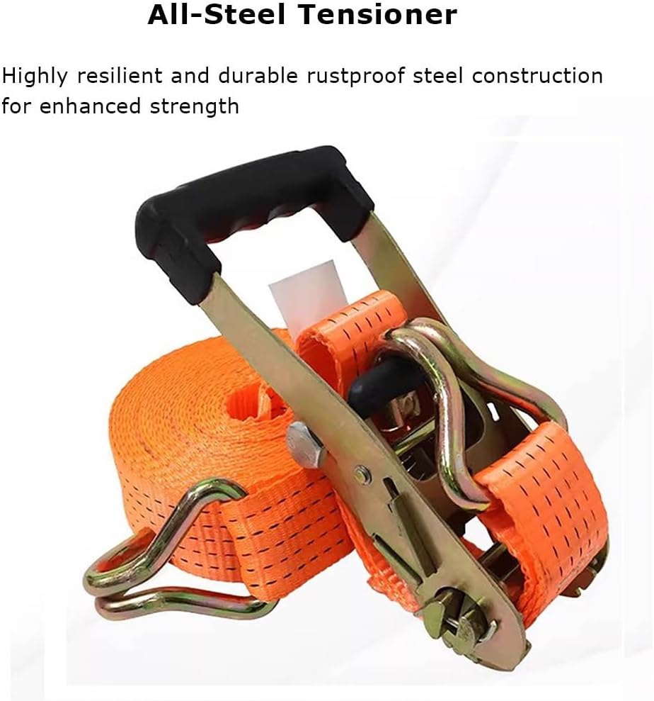 Crafted from high-quality Polyester, Heavy-Duty Ratchet Straps are more durable, and the handles are rubber-coated to prevent damage. pickup truck, or a versatile trailer.Product SpecificationsProduct Name: Ratchet StrapAvailable Length:3.8cmx1m/1.49x39in , 3.8cmx2m/1.49x78.7in , 3.8cmx3m/1.49x118in , 3.8cmx4m/1.49x157in , 3.8cmx5m/1.49x197in , 3.8cmx6m/1.49x236in , 3.8cmx7m/1.49x275in , 3.8cmx8m/1.49x314in , 3.8cmx9m/1.49x354in , 3.8cmx10m/1.49x393inWidth: 1.49inchAvailable Colors:A , BMaterial:Metal, PolyesterNote: 1.Belts should be checked regularly for cracks and wear and tear. 2.Belts are not suitable for lifting loads! 3.When the straps are damaged, replace the new ratchet straps in time to avoid the fall of the goods caused by the failure of normal use.4.All measurements are taken manually and there may be an error of,approximately 1-3cm Please consider this before purchasing