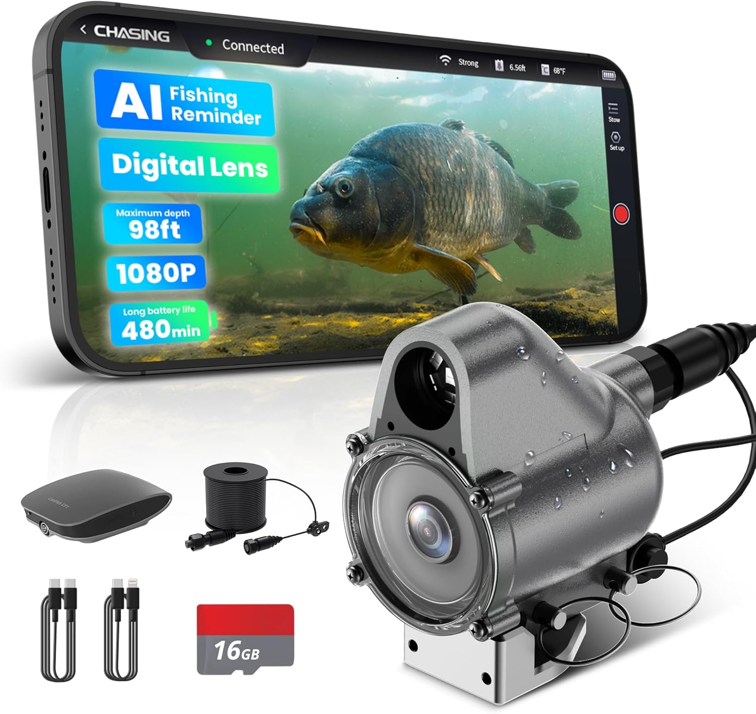 Chasing Canfish CF1 Underwater Fishing Camera Kit,1080P Full HD Portable Video Fish Finder,APP Remote Control Real-time Observation,Fishing Camera