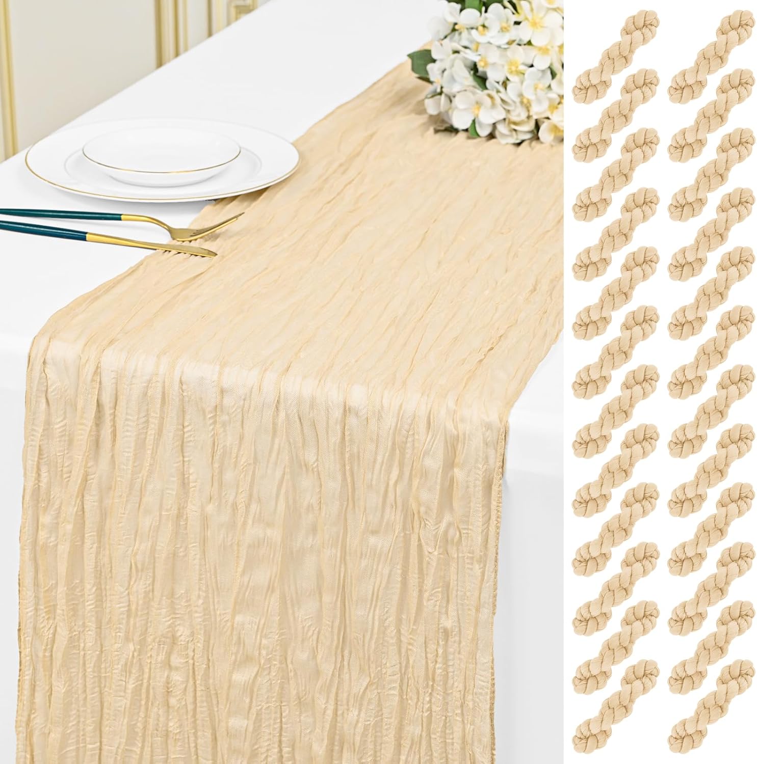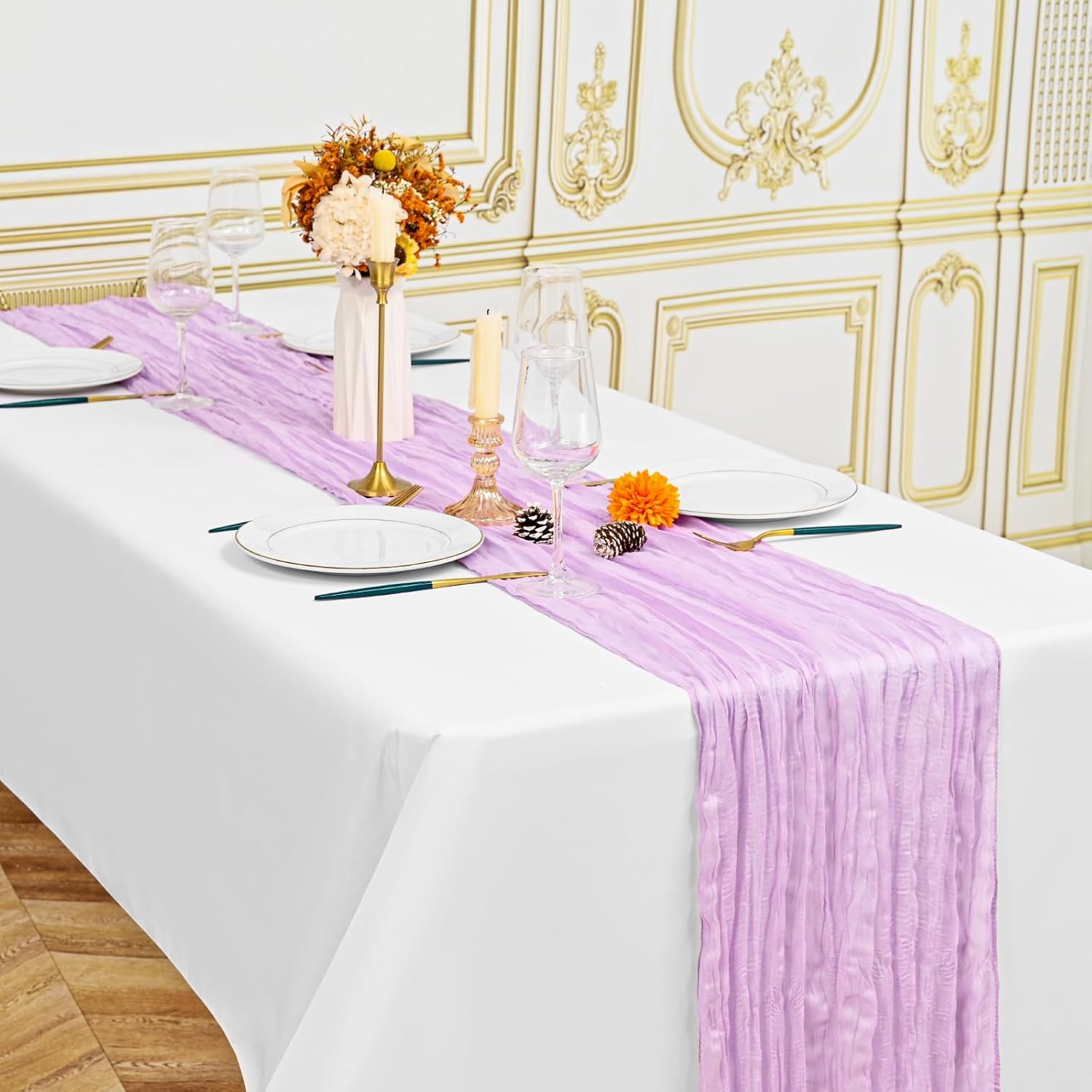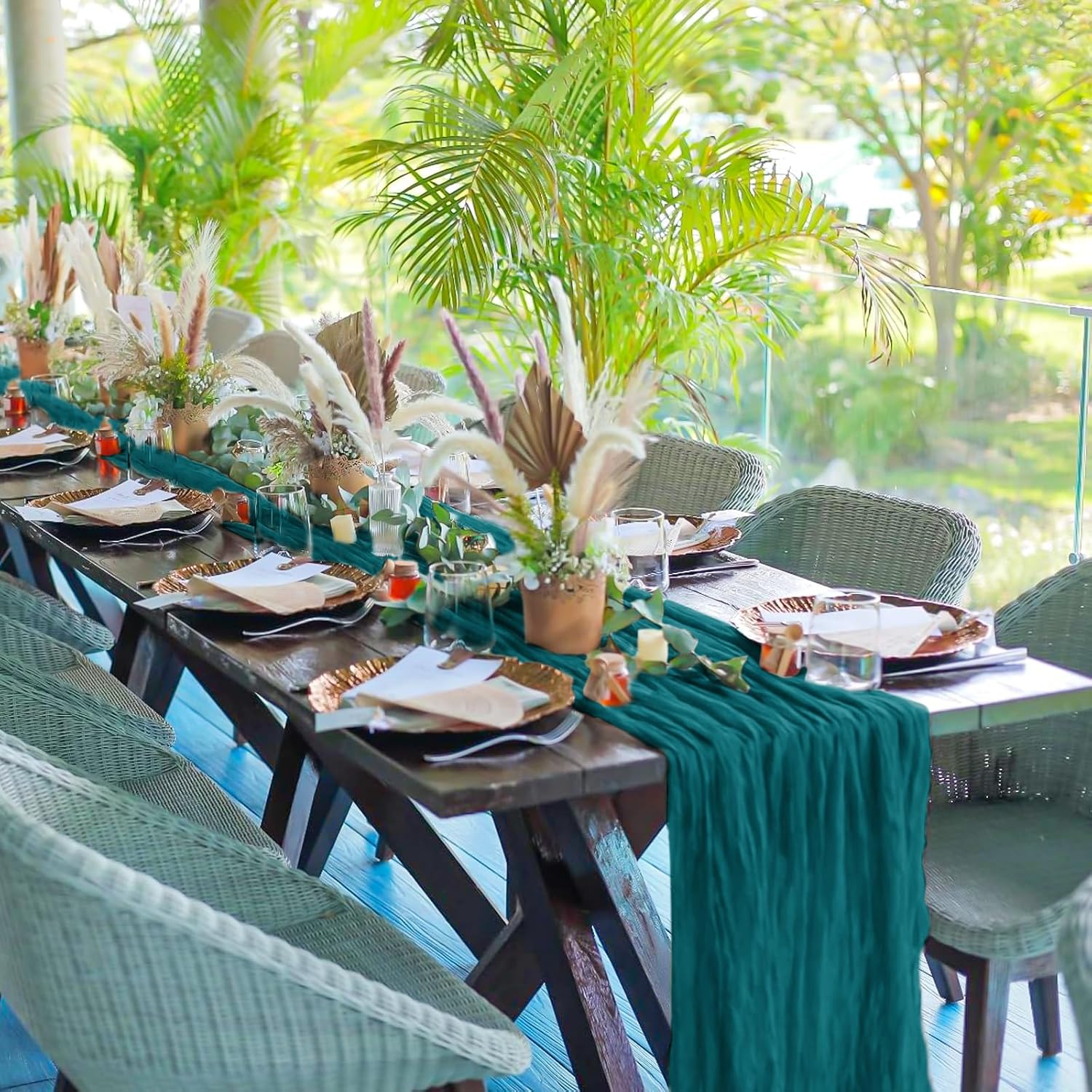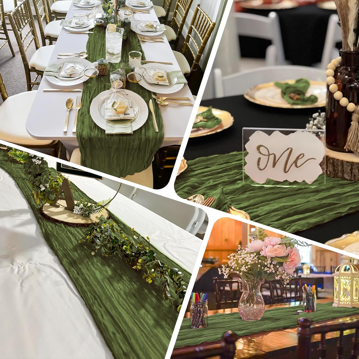 Specification:Quantity: 24 PiecePackage: One Pack of 24 Cheesecloth Table RunnerSize: 21.5x120 inch /50x300cmSize Fit:Please refer to the product image for the placement effect of different table sizesColor: BurgundyMaterial: 100% PolyesterStyle: Bohemian Romantic RusticFeature:1.Cheesecloth table runner has an elegant appearance with natural wrinkles. It presents a semi transparent visual effect, which is an excellent desktop decoration2.Cheesecloth fabric has many small mesh holes that make it breathable and easy to clean and care.3.The length of this product is long enough can support you to create more elegant shapes without constraints.Reminder:1.Do not over wash, dry clean, bleach, iron or expose to sunlight to maintain a better user experience and product durability.2.Due to differences in screen display, there may be slight differences in color.3.If you have any quality issues or misunderstandings with the products you receive, please feel free to contact us at any time to resolve them.
