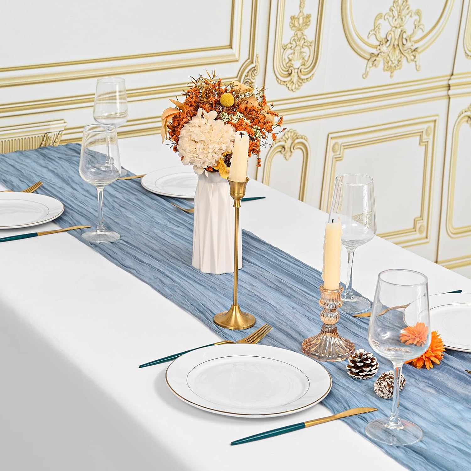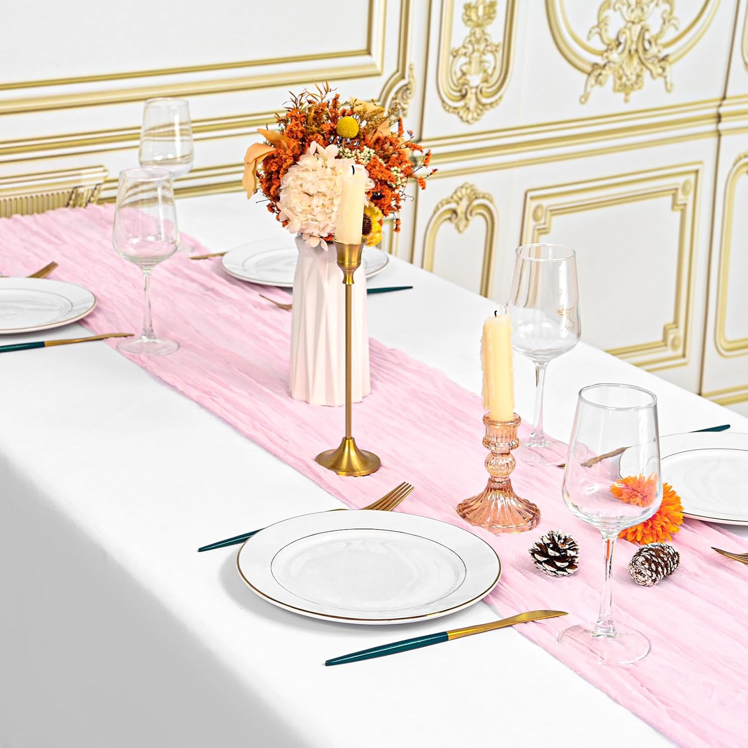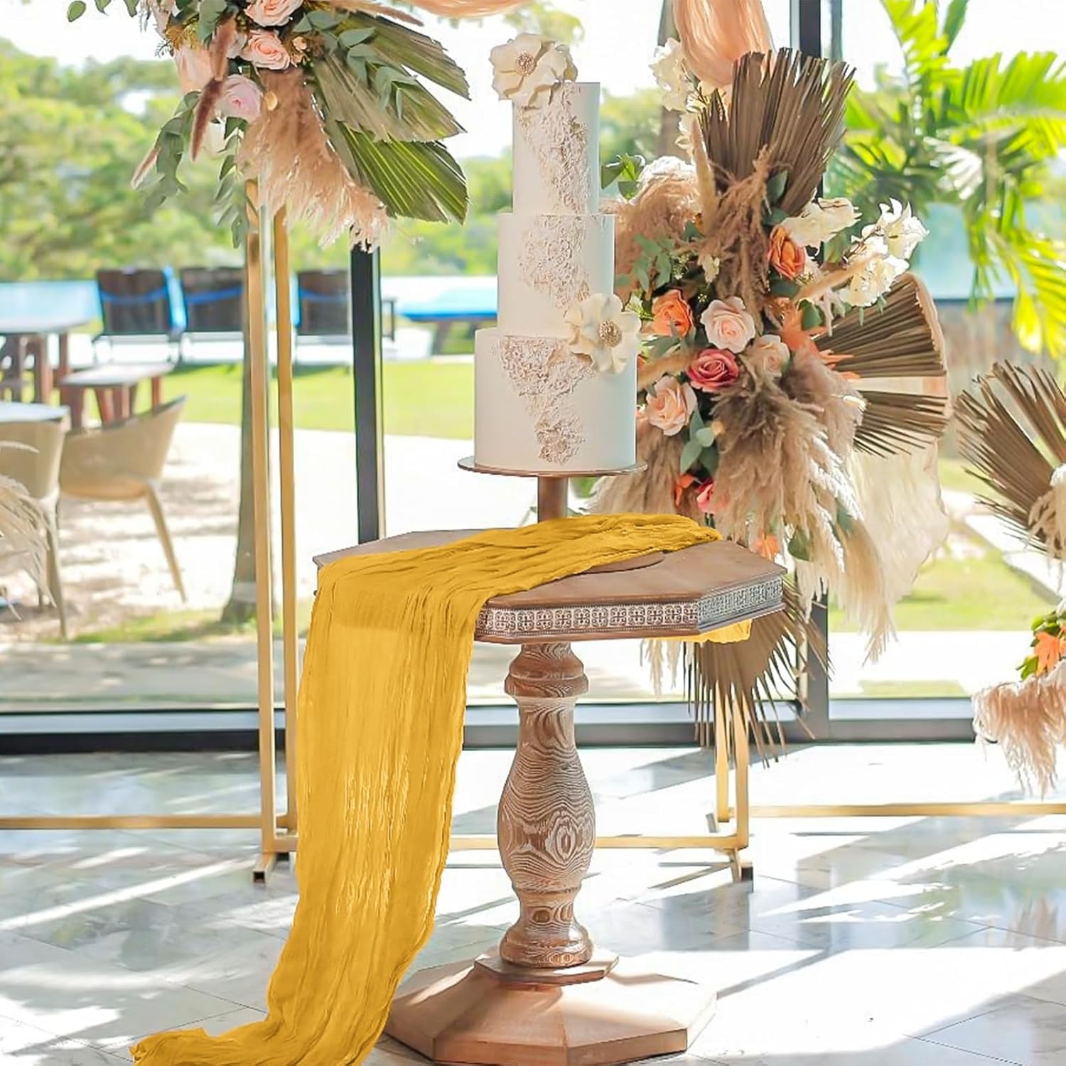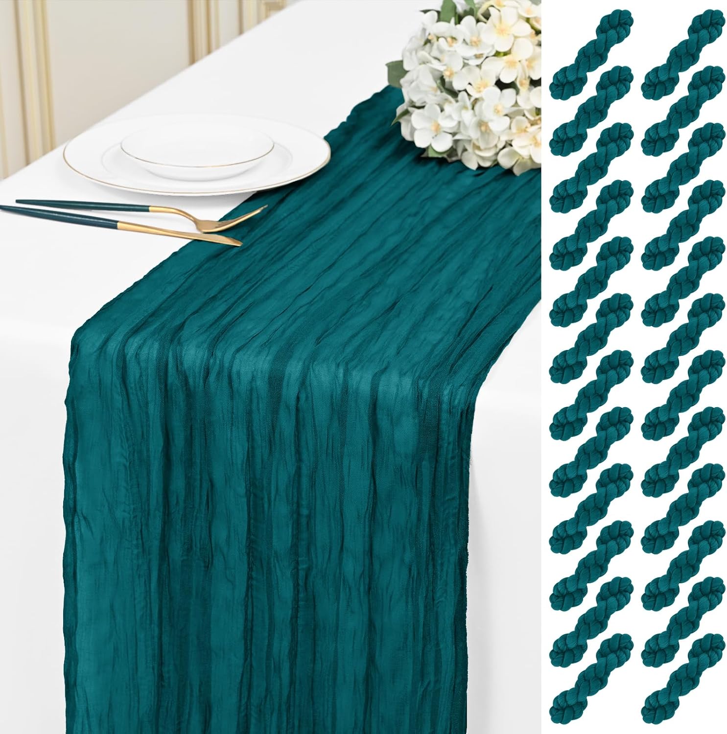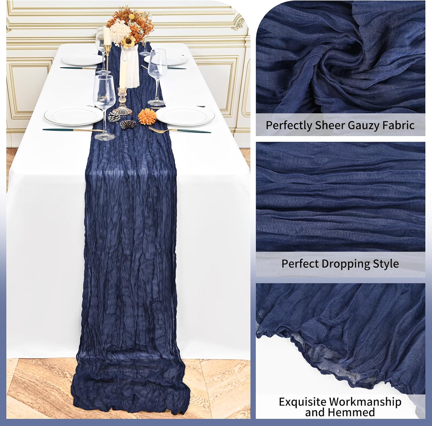 Specification:Quantity: 24 PiecePackage: One Pack of 24 Cheesecloth Table RunnerSize: 21.5x120 inch /50x300cmSize Fit:Please refer to the product image for the placement effect of different table sizesColor: BurgundyMaterial: 100% PolyesterStyle: Bohemian Romantic RusticFeature:1.Cheesecloth table runner has an elegant appearance with natural wrinkles. It presents a semi transparent visual effect, which is an excellent desktop decoration2.Cheesecloth fabric has many small mesh holes that make it breathable and easy to clean and care.3.The length of this product is long enough can support you to create more elegant shapes without constraints.Reminder:1.Do not over wash, dry clean, bleach, iron or expose to sunlight to maintain a better user experience and product durability.2.Due to differences in screen display, there may be slight differences in color.3.If you have any quality issues or misunderstandings with the products you receive, please feel free to contact us at any time to resolve them.