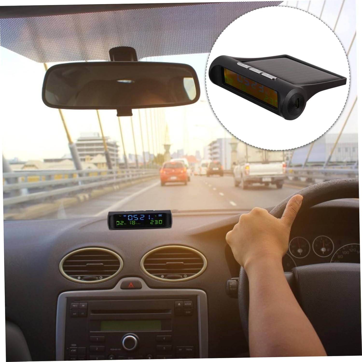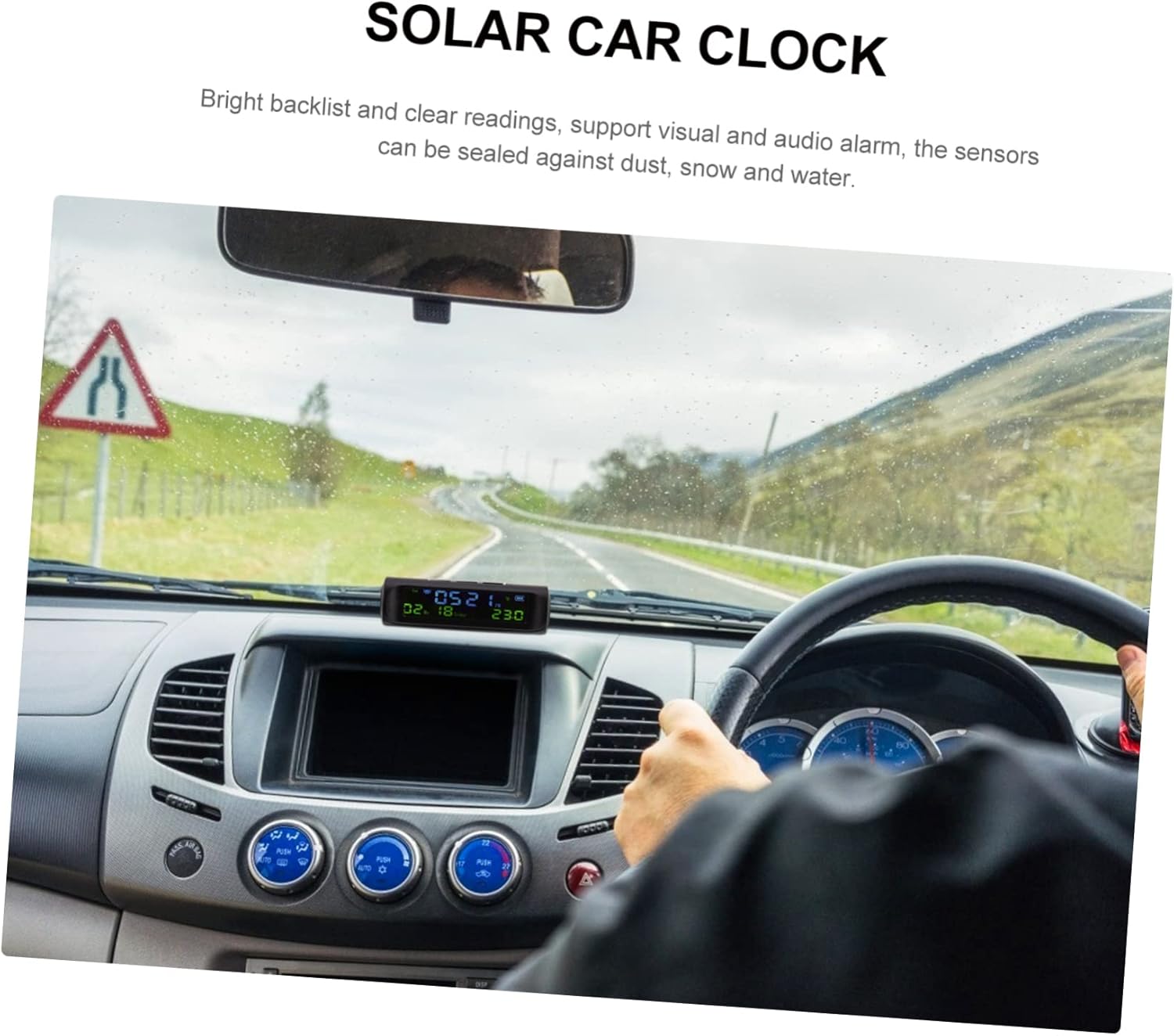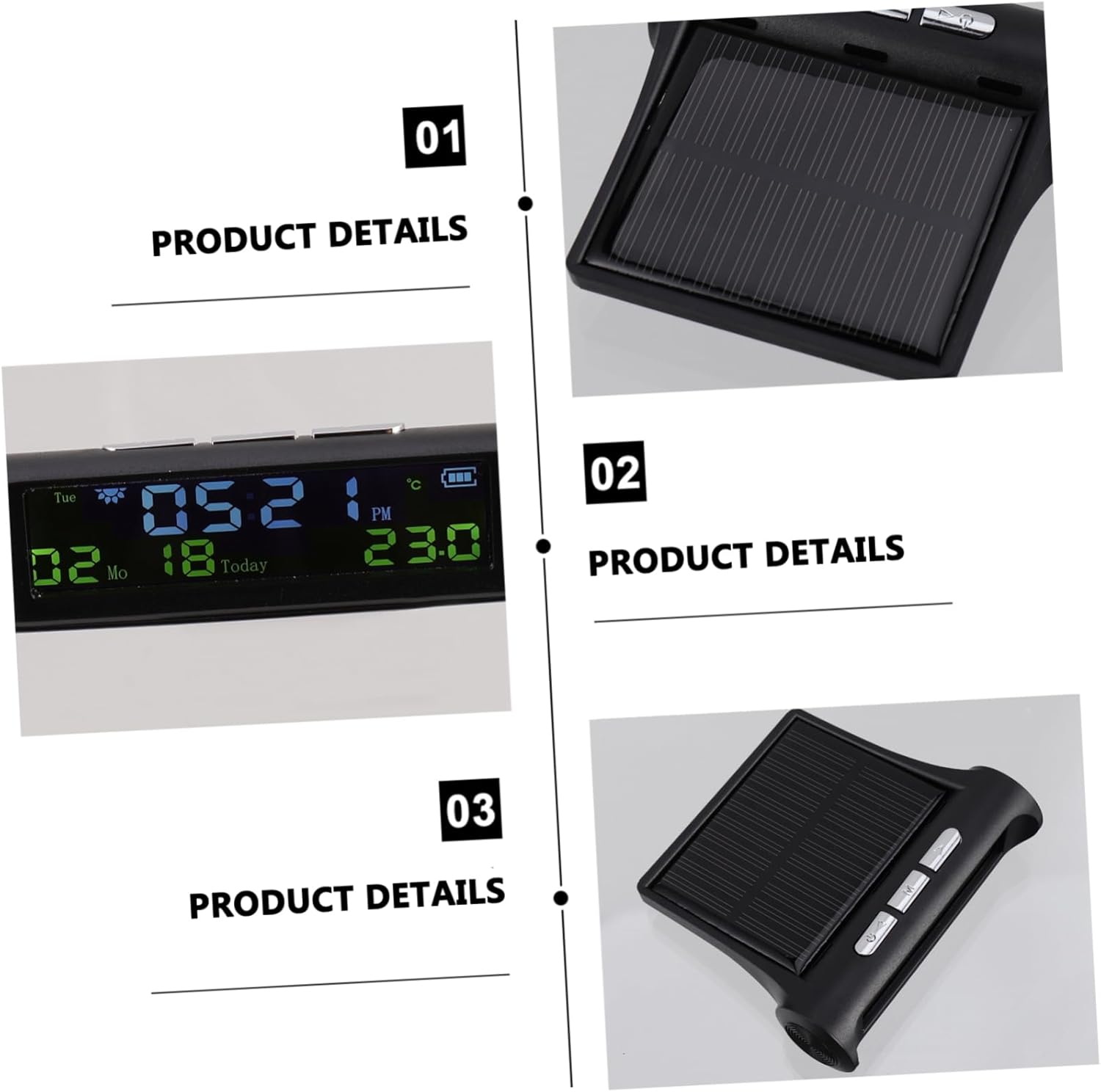 Package List 2 x clock 2 x USB data cable Characteristics - Storage temperature: -30℃~85℃ Automobile Digital Clock. - Working current: ≤8mA Car Calendar. - Temperature setting range: 60℃~100℃ Car . - Power-on voltage: DC 5V Solar Car Clock. - Working temperature: -20℃~80℃. - Size: 9.30 x 8.50 x 2.50cm/ 3.65 x 3.34 x 0.98 inch. - Color: Black. - Material: ABS and PC. - Solar charging, automatic , materials, and secure Driving Clock. - Tire pressure monitoring system, uses pressure monitoring sensors within each tire to monitor specific pressure levels Auto Digital Watch. - Compact and portable, can be put on the desk to remind you of the time Car Solar Charge Clock. - Support solar power charging and USB cable charging, ensuring the product will work continuously. - Gives you early warning of air leaks and other abnormal tire situations so corrective action can be taken and tire life can be extended. - High-efficiency solar panel, super serial number capability, large-capacity built-in metal battery.Goods Descriptionautomobile Are you looking for products with reasonable prices? Are you looking for a sturdy, and reliable solar car digital clock that can complete multiple tasks? If so, our products will be ! Our solar car digital clock will meet your needs