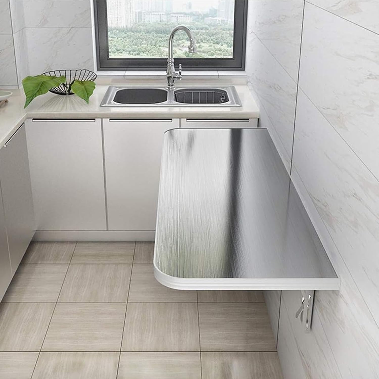 The wall-mounted folding table uses 304 brushed stainless steel table top, aluminum alloy edging. It is equipped with a stainless steel triangular bracket, which is durable and has strong load-bearing performance. The personalized folding design greatly increases people's living space. You can place it in the kitchen, study, bedroom, bathroom, storage room, dining room or balcony according to your needs - it can be used as a dining table, children's desk, computer desk, etc. It can also be used as your own wall-mounted folding table, with convenient storage racks for key rings, towels, toothbrushes, mini potted plants and more. It only needs a clean damp cloth to clean and wipe, it is clean and beautiful, and it is easy to install. We can customize any size for you, trust us, we will solve any problems for you, we are committed to providing customers with the best products at the best prices.
