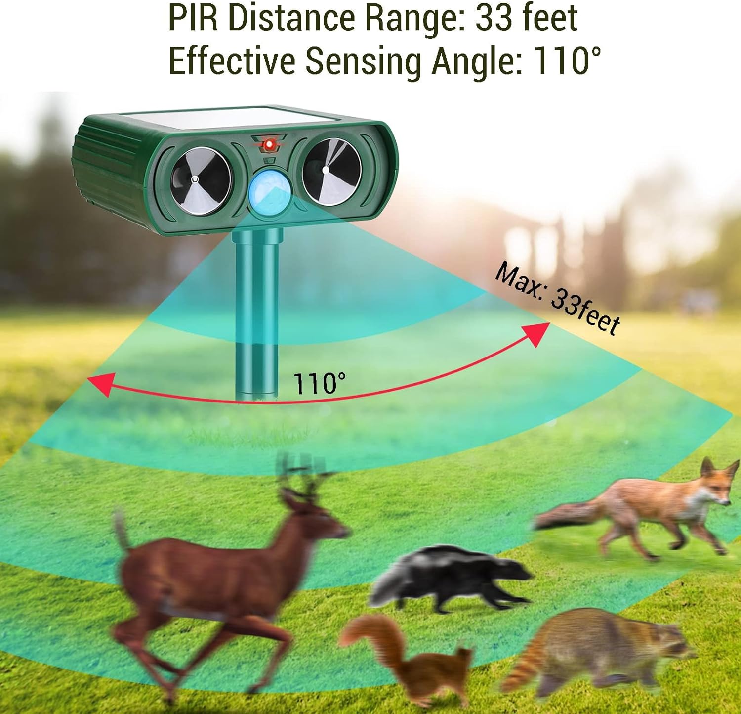 Guard your plants and property with our motion-activated ultrasonic animal deterrent. It’s solar-powered for hassle-free operation and designed to repel deer, cats, dogs, squirrels, rabbits, and more. With no harmful chemicals, it’s safe for pets, children, and the environment, while its weather-resistant build ensures lasting performance.