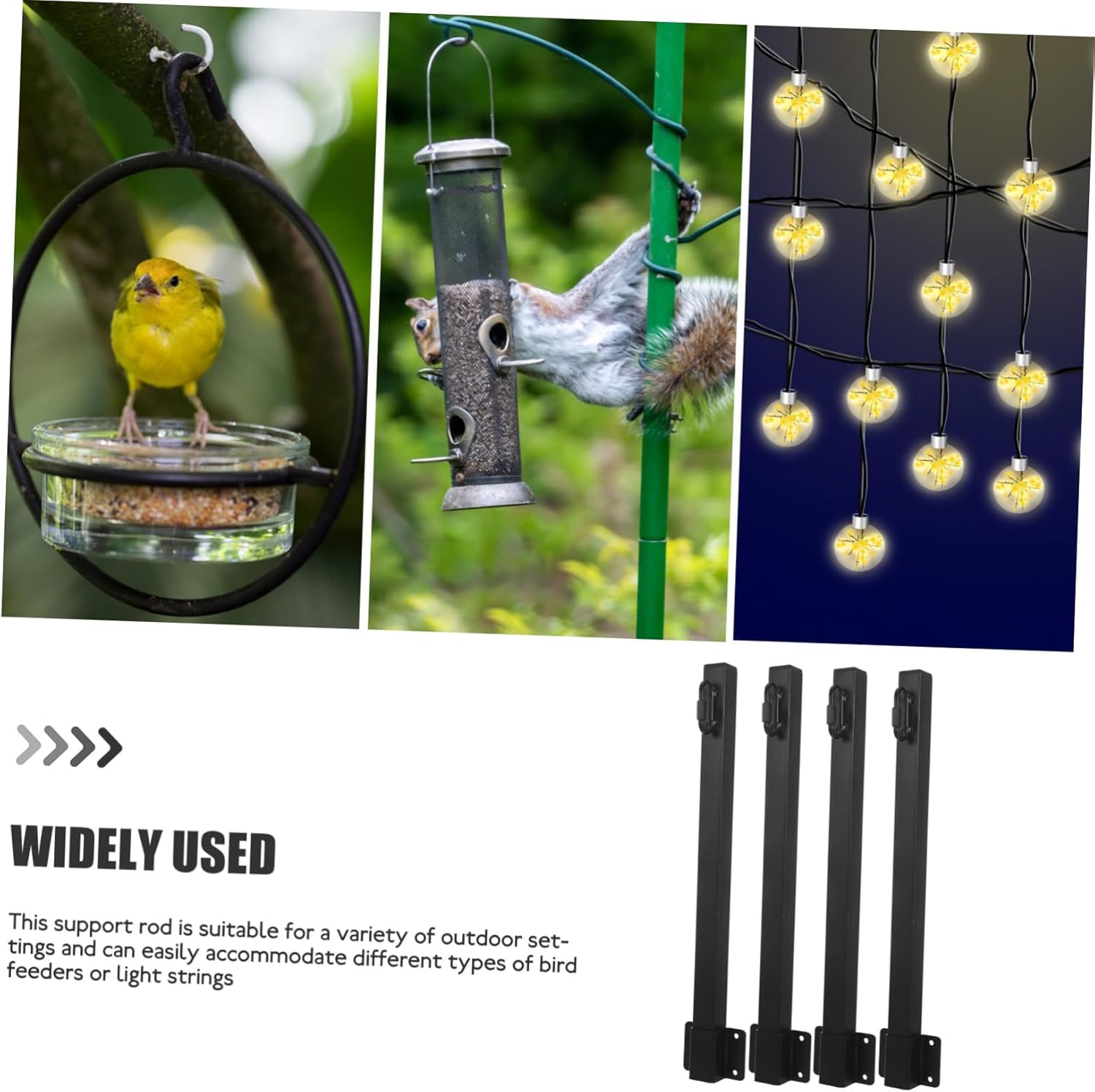 Package List 4 x poles Characteristics -Color:Black outdoor lighting accessory -Size:40.30X5.00X2.50cm/15.84X1.97X0.98in bird feeder pole -Material:Steel light posts -The use of sturdy material ensures that the product will have a performance box. -Effortless installation without the need for extra tools, saving you time string light pole. -Constructed from steel materials, ensuring durability and resistance to rust for extended use outdoor lights hanger. -The pole is for various outdoor areas like terraces, yards, and fences outside lights pole stand. -Elevate your outdoor decor with the support rod for hanging bird feeders or light strings string light hanger.Goods Informationbird feeder The unique design and craftsmanship ensure its popularity and practicality.outside lighting Using reliable materials, .hanger Do you need a string light pole or bird feeder support? If so, take a look at this product.light posts This is ! With this product, and you can have a more professional and enjoyable looking experience