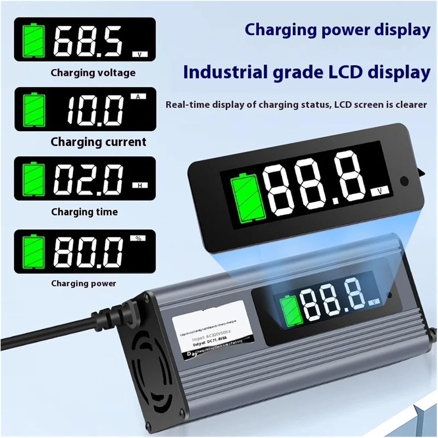 Industrial Power SupplyAC input:110Vor 220VAC, 47 to 63HzOutput power: 3KWSize:30A: 86*168*284mm25A20A:85*128*285mm 15A:75*140*190MMCharging Mode:6 Stages, CC, CV, TrickleOutput current :15A/20/25/30/35APretection:IP67 waterproof