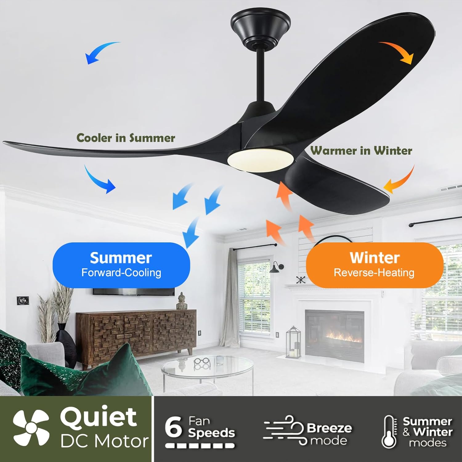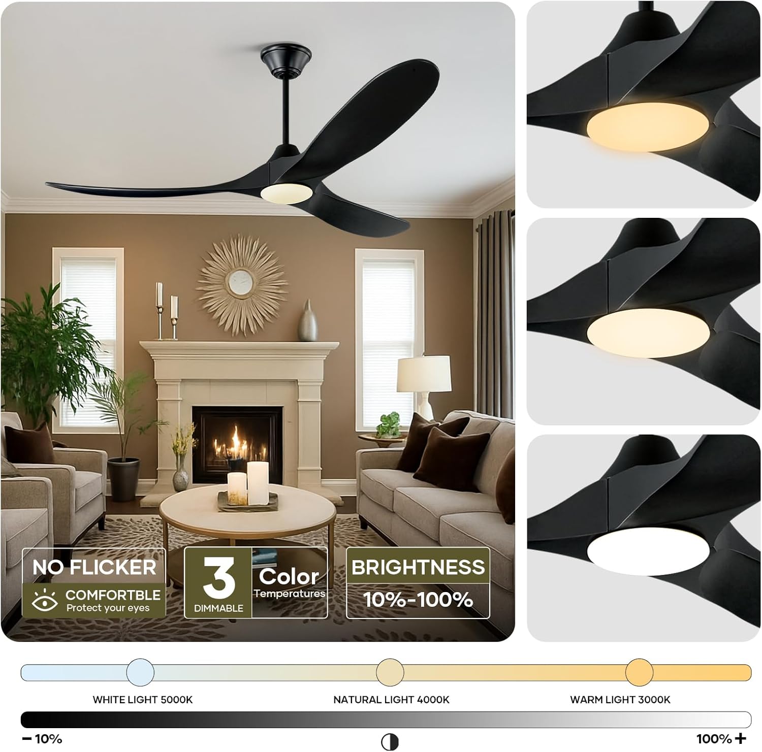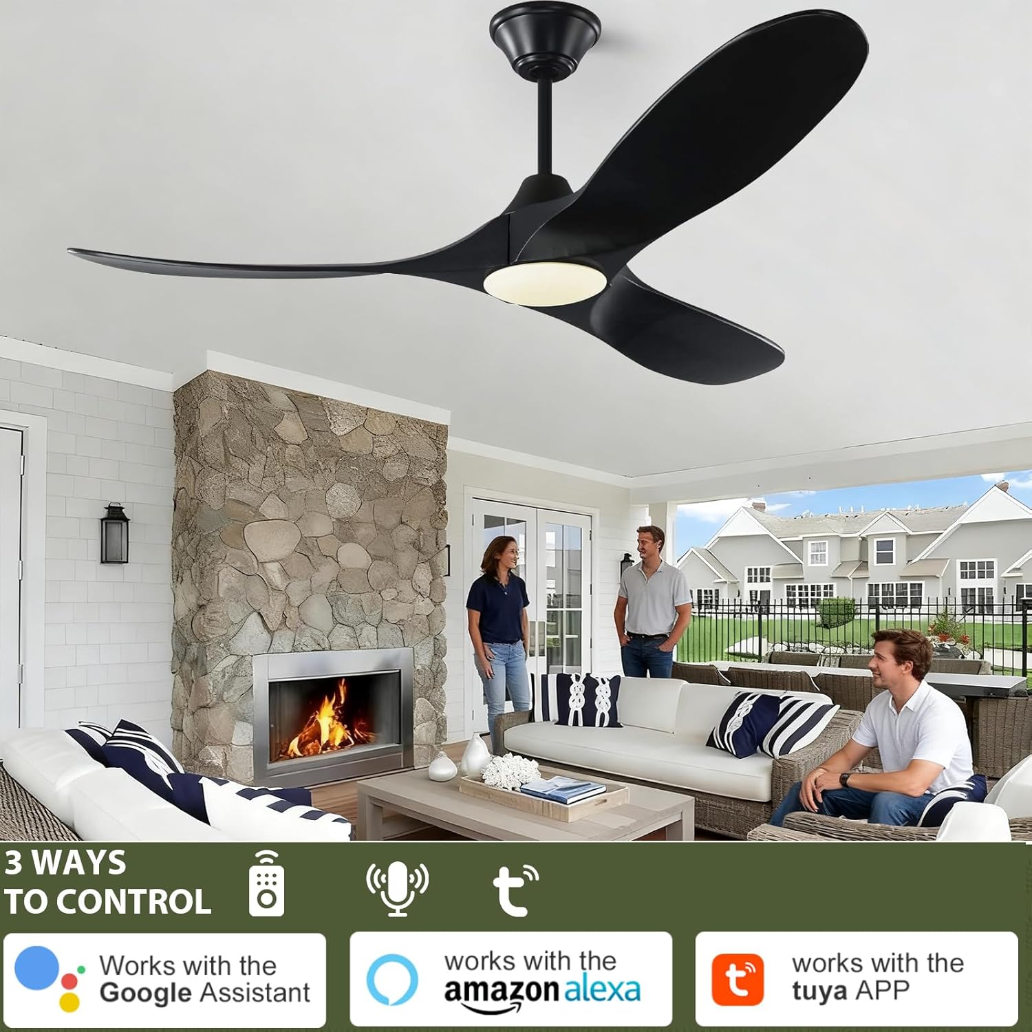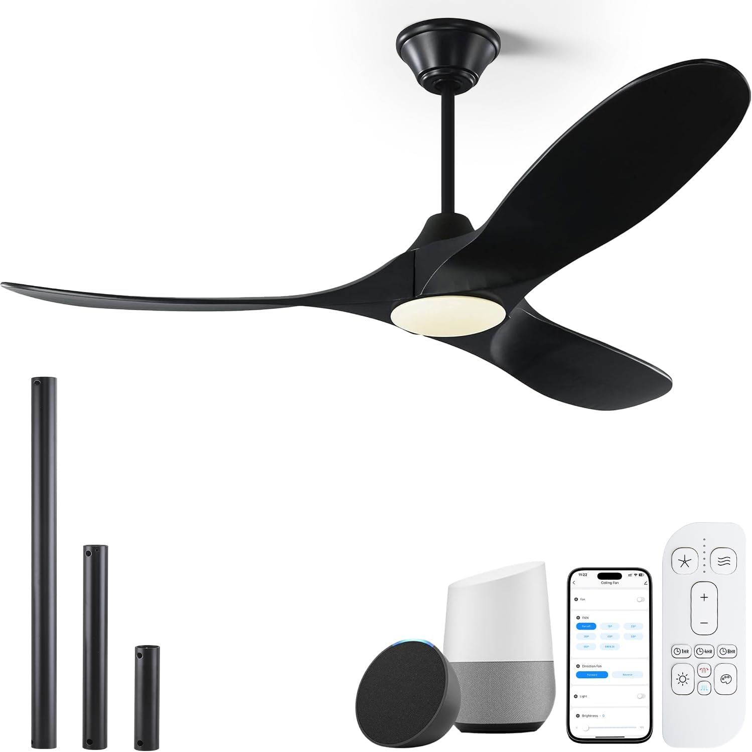 | Special Features | 3 Blades Solid Wood Black Outdoor Ceiling Fan with Light Dimmable, 3CCT, 10-100%, 3 Down Rods (5/10/24 Inches), Easy to Install, Can be Tilted for Installation<20°, Large Airflow Reversible Quiet DC Motor, Smart Remote/APP/Alexa Control:6-Speed,1/4/8h Timer, Natural Wind, Memory Function |