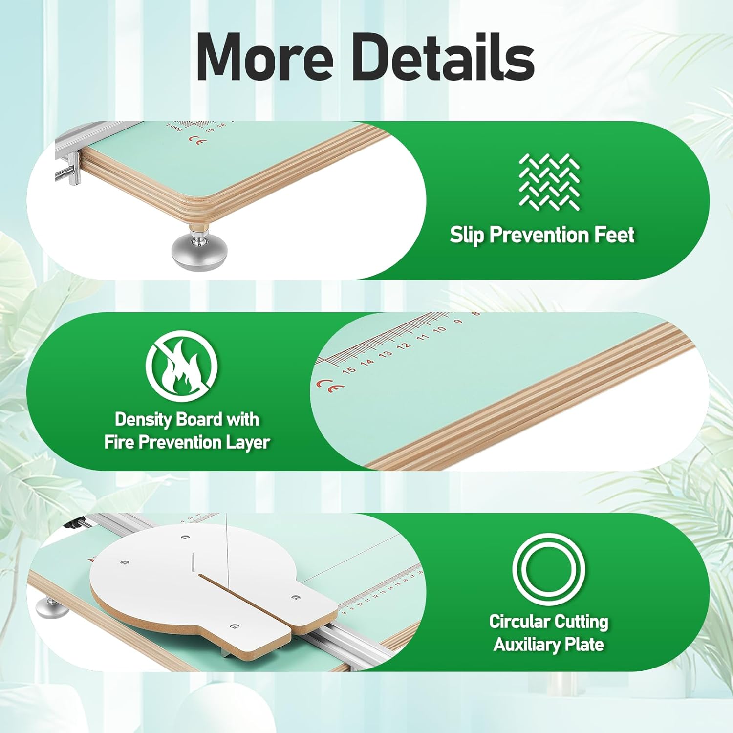 Take your foam projects to the next level with this professional hot wire foam cutter table—a compact, powerful tool designed for hobbyists, modelers, and creators. With rapid heat-up time, adjustable temperature range (32–572°F), and a fully adjustable 360° cutting bracket, this tool delivers smooth, accurate cuts on a wide range of materials including Styrofoam, pearl cotton, sponge, and KT board. Whether you're shaping curves, carving out cylinders, or slicing intricate angles, this foam cutting tool gives you the precision and flexibility you need—all in a tabletop design that fits right into your workshop or craft room.KEY FEATURESFast 0–5s heating time with copper heating holeAdjustable temperature: 32–572°F360° bracket rotation and angle guideReal-time voltage display with stepless adjustmentLarge 15.4" x 12.9" fireproof workboardAnti-slip feet and stable buildCircular cutting plate for cylinders and ringsAPPLICATIONSPerfect for cutting foam, sponge, ribbon, pearl cotton, KT board, and other foamed materials. Great for architectural models, craft projects, cosplay props, packaging prototypes, insulation work, and DIY carving.SPECIFICATIONSMaterial: Double-layer Density Board, Stainless Steel, RubberColor: Cyan, SilverMount Type: CountertopAssembly Required: YesInput Voltage: AC100–240V, 50/80HzOutput Voltage: DC6–18VPower: 72WPreheating Time: 0–5sCutting Height: 0–9.84"Cutting Width: 0–11.02"Cutting Diameter: 0–3.94"Heating Wire Diameter: 0.28mmTemperature Range: 32–572°FBracket Angle Range: 0–180°Power Cord Length: 87.6"Workboard Size: 15.4" x 12.9"Product Height: 13.1"Package Size: 15.4" x 17.3" x 4.5"Net Weight: 6.4 lbsGross Weight: 7.7 lbsPACKAGE INCLUDES1 × Foam Cutting Machine1 × Power Adapter1 × English ManualOther Accessories for InstallationIMPORTANT NOTESAlways wear heat-resistant gloves when in use; wire can reach high temperatures.Avoid flammable surroundings; cut in well-ventilated spaces.Not suitable for children—adult use only.Whether you're an artist, maker, modeler, or engineer, this hot wire cutter gives you full control over every cut. Clean lines, stable performance, and creative flexibility come together in one portable tabletop tool. Order now and start cutting smarter.