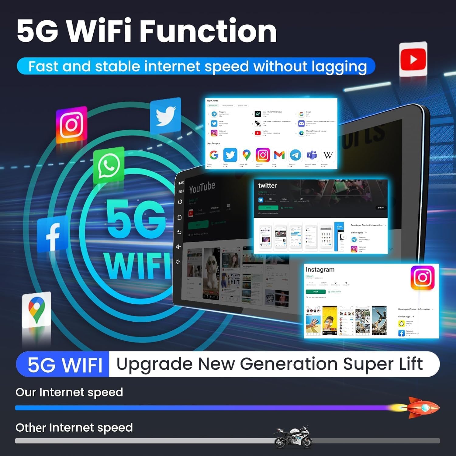 | Additional Features | Apple CarPlay & Android Auto, Built-In Bluetooth5.0, Hands-Free Calling, Built-In Dual band WiFi, QLED Touchscreen, GPS Navigation, |