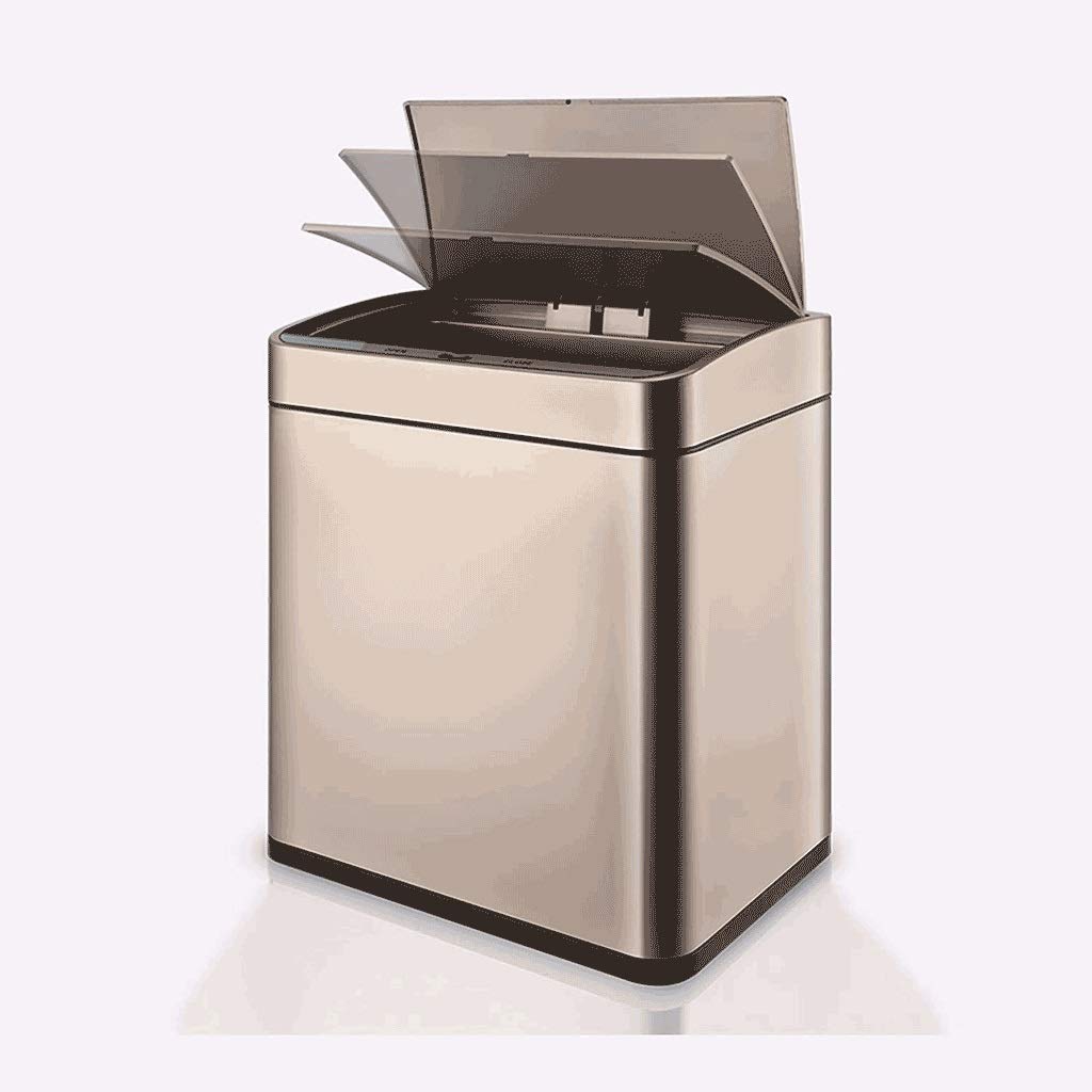 25CM humanized sensing distance, touch-free! Just the motion of your hand opens the lid.When you frequently clean up the trash, just press the button to keep the lid for a long time, until you press the CLOSE button, the trash can resumes automatic sensing mode. barrel design inside and outside, the inner barrel is equipped with handles and garbage bag storage holes, which is convenient for fixing the garbage bag, avoiding the appearance of the garbage bag from being exposed, and it is easy to clean and dump the garbage.Closed design, airtight double-layer barrel to prevent overflow of garbage smell and keep indoor air fresh.We recommend using this recycling bin in offices, bathrooms, bedrooms, etc. Powerful kitchen trash can.The trash can is really elegant and beautiful. Slim and compact trash cans can be used in narrow corners, and dead corners can be used effectively. Material: PP+metalProduct capacity: 8L /2.1 gallons, 12L /3.1 gallonsScope of application: bedroom, kitchen, living room, office, etc.Package Include:1*The trashnote:1. Please confirm the size and color before purchasing.2. There are no other items except the trash can in the product photo.3. The size is measured manually. This may be wrong, this is normal, please refer to the actual size, thank you.5. Due to the difference of lighting and screen, the color of the product may be slightly different from the picture, please understand.6. If you find any problems with our products, please feel free to us via email. We will solve your problem as soon as possible.7. Thank you for visiting our store, click to enter our store, there are more products to choose from.