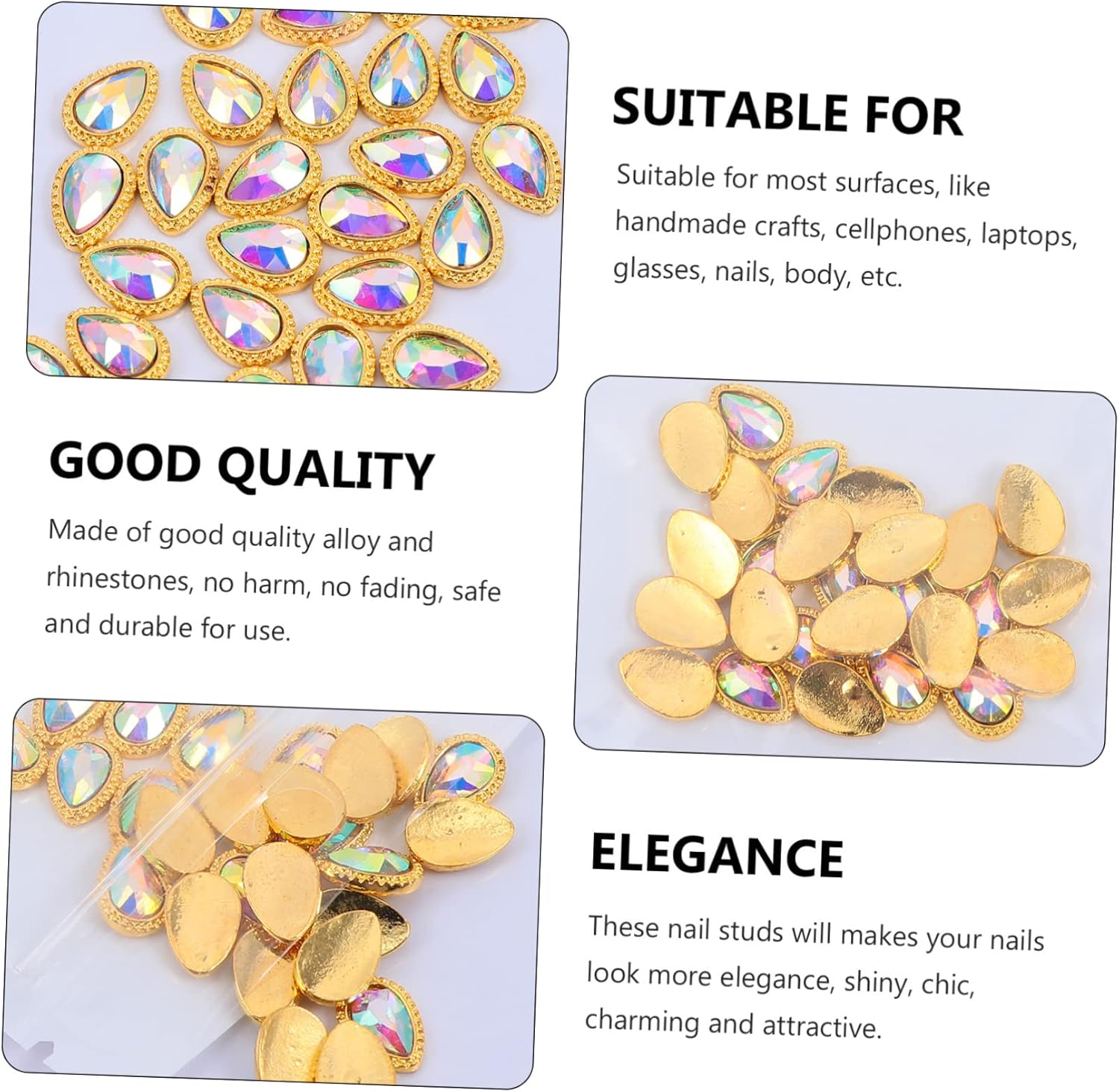 Package List 90 x Nail Studs Characteristics -Size: 1.00X0.60X0.30cm/0.39X0.24X0.12in rhinestones nail gems -Color: Golden nail gems -Material: Alloy, rhinestone rhinestones nail gems sticker - It is fun to DIY nail art with your family or friends when family gathering, enjoy your own unique nails and good time crystals nail decal. - Quick to apply, just a few seconds, you can get the fine nail art design, suitable for both beginners or professional nail salons rhinestones nail . - Nail decal studs with rhinestones, can be used to design your own nail art, highlight, etc crystals nail . - DIY . Allow you to enjoy the fun of nail art. for Christmas, new year party, birthday party, etc crystals nail gems sticker. - and beautiful, designed with chic and fashionable shapes, look great on your nail, make you look more beautiful and elegant nail gems.Goods Informationcrystals nail gems Meets you need of dazzling nail-art designs, really gives you the beauty and sparkle you want to your decoration.crystals nail Multi-function, rhinestones studs for crafts, nail art, clothes, shoes, jewelry, phone, cards crafting, DIY craft, bags, wedding dress, books, guitar, cups, table scatter and so on