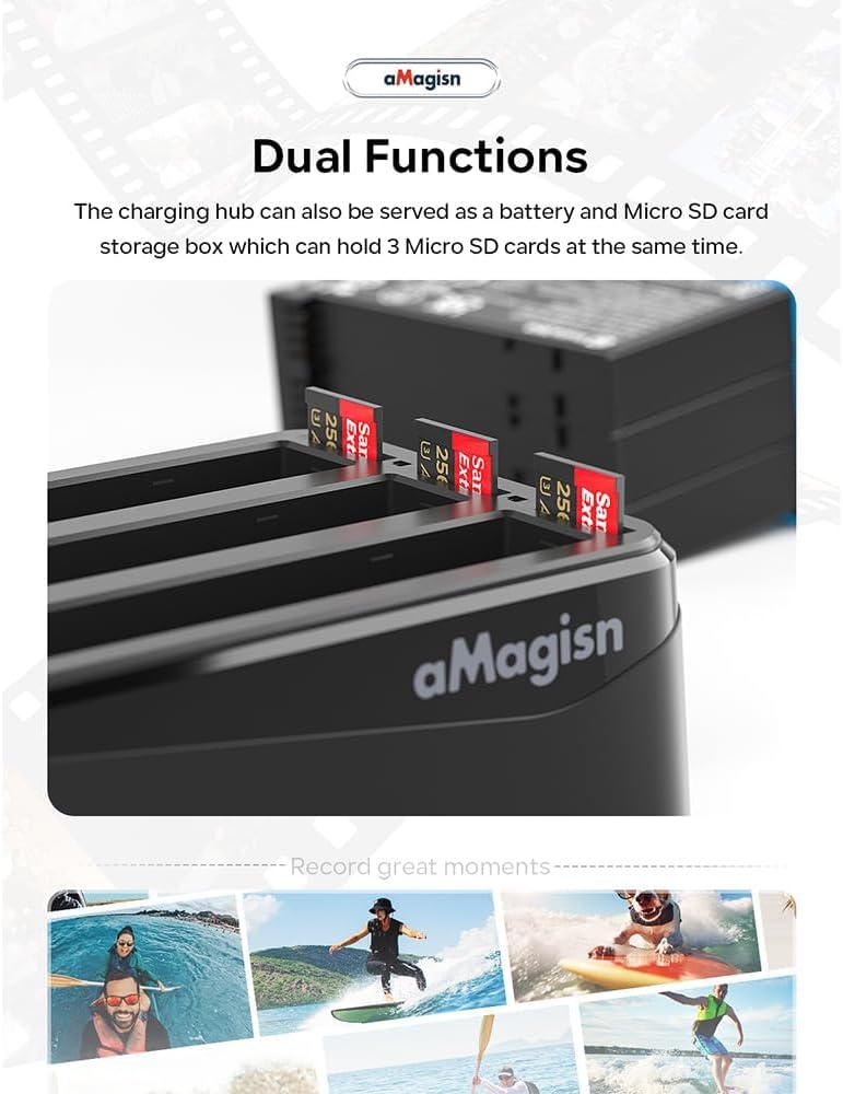 1. Compatible model: Insta360 X4 2. Battery capacity: 2500mAh, voltage: 3.85V. 3. Portable quick charging case is small, powerful, convenient and practical. With overcharge, short circuit, overheat, overcurrent, and overvoltage protection. 4. The charging box can intelligently switch charging modes according to batteries in different states of charge, taking care of your batteries. It can hold 3 batteries and 3 SD cards at the same time. 5. Intelligent charge management system built into the charging box can identify high and low power and assign the maximum battery fully charged first.