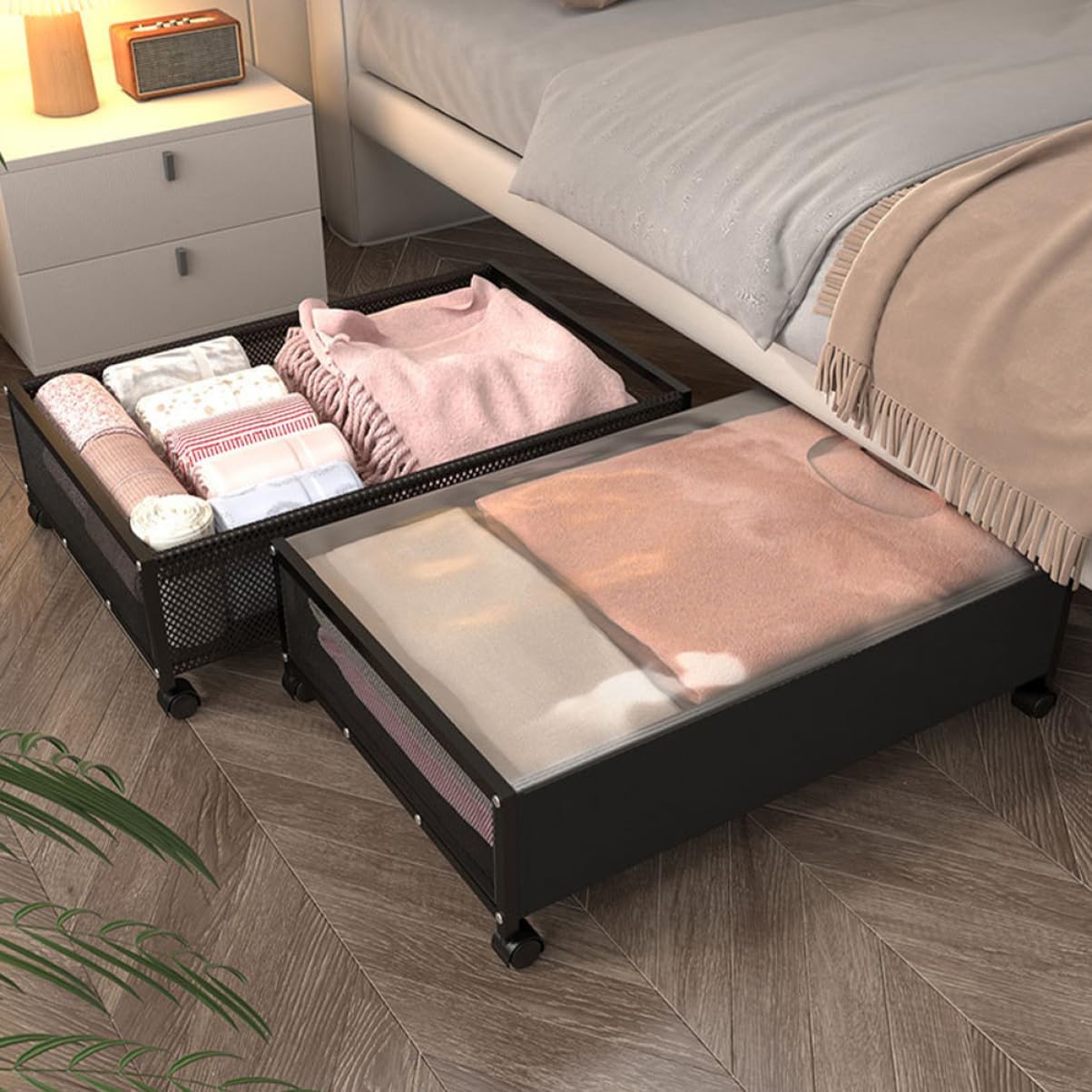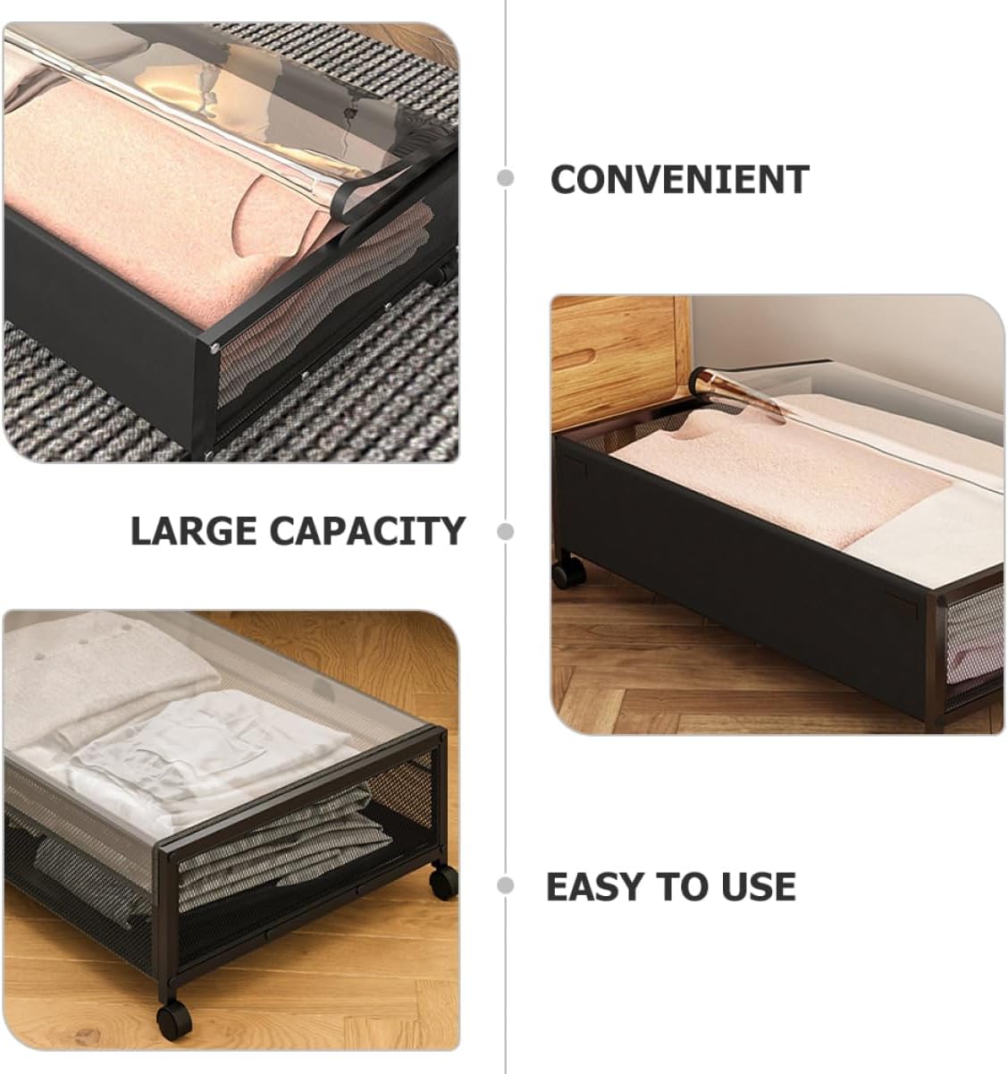 Package Include 1 x Under Bed Organizer Features -Material:Non-woven fabrics, iron, PVC Under Bed Storage Basket -Color:Black Under Bed Storage Containers -Size:62.00X42.00X19.50cm/24.37X16.51X7.66in Container - This under-bed storage rack is made of material and features a sturdy mesh structure for increased capacity Storage Under Bed. - The metal mesh structure allows for easy identification of stored items, even when stored under bed Under Bed Storage Holder. - The storage basket under bed can easily store clothes, , books and other items, making the room cleaner Storage Case For Bedroom. - The sleek and modern design adds a touch of style to any bedroom or living space Under Bed Storage With Wheels. - This versatile storage rack is for storing seasonal clothing, shoes, , 's , books, and more Bed Storage Organizer.Goods Description Organizer Also can be a present choice for your friends, they will like it.Bed Storage Organizer Made of sturdy material for long time and use.Under Bed Storage Drawers It has a simple design, but very in use, giving you a using experience.Under Bed Storage Container Designed for home storage, this under bed organizer can help to keep your home organized
