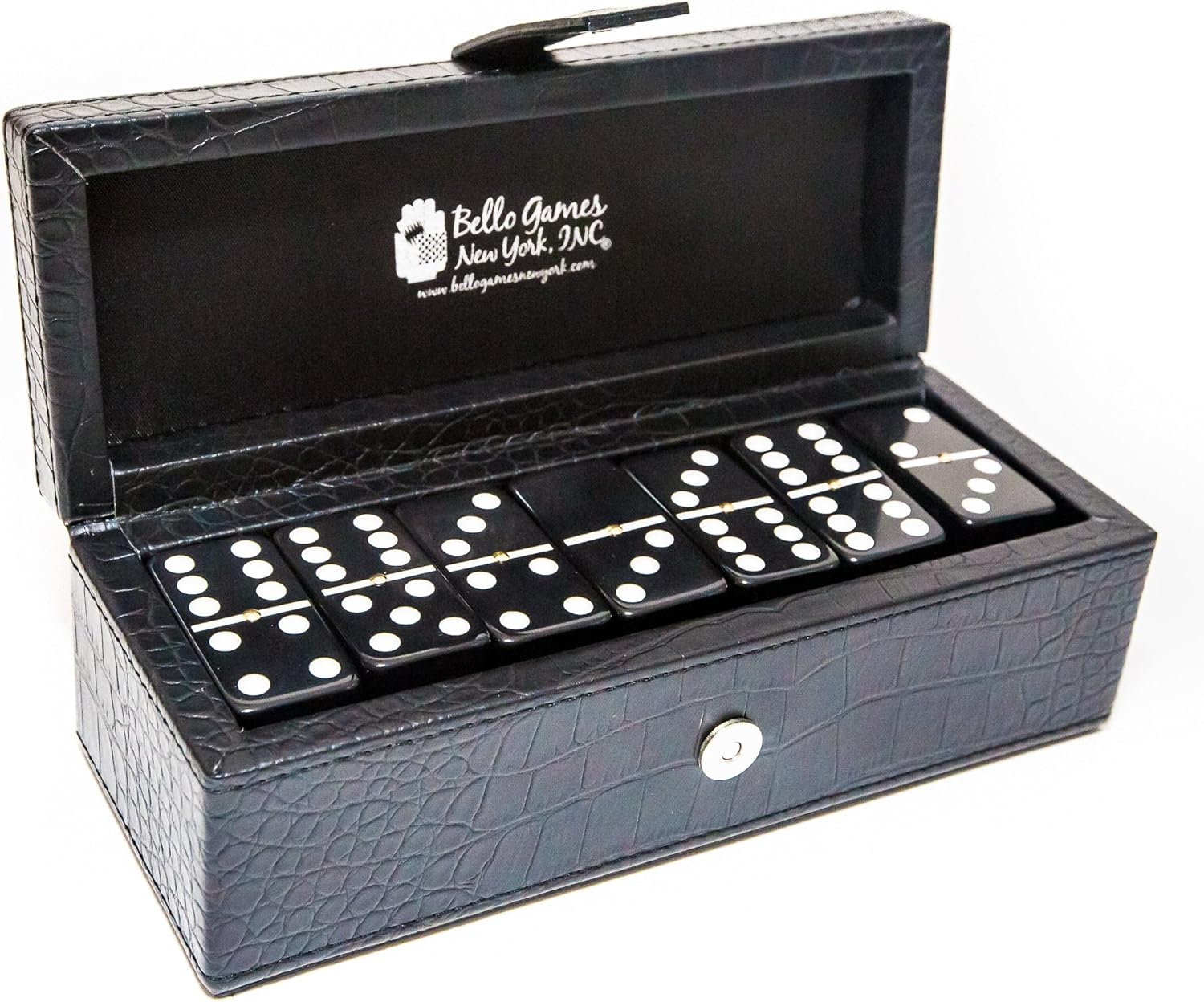 28 uria stone engraved professional tournament jumbo size tiles with solid brass spinners. Complete with a beautiful leatherette croco case with a hidden magnet under the flap to keep the case closed, hardware is nickel plated. Size of tiles: 2" x 1 1/8" x 13/32" Thick. Size of case: 9" (l) x 3 3/4" (w) x 3 1/4" (H). Imported from the Orient. Imported from the Orient. Imported from the Orient.
