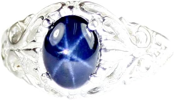 8x6mm Blue Star Sapphire sitting in 3 grams of filigree style sterling silver. These are natural, mined stones. They have been heat treated to help bring out the star, but the result is, they have a really good clean star. It's a nice addition to your collection, one that you can wear anytime you want with anything you want. And that's pretty hard to beat. Good for the office, for the evening, or just because. This ring just looks great! Ring sizes 3-16 in 1/4 size increments Ring sizing is free! 30 day unconditional guarantee 1 year warranty on workmanship. Our jewelry is custom made when you order. ––– Note Before You Order ––– This is a natural mined sapphire heat treated to bring out the star. ***The color of the stone will vary*** in shades of blue to blue-gray to dark blue. One thing about star sapphires is that they need a bright light source to show the best star. Sunlight and phone light usually show a great star. Florescent lights don't do so well. These are mined stones treated to show the star better. A lot of star sapphires that show dynamic stars are typically created.