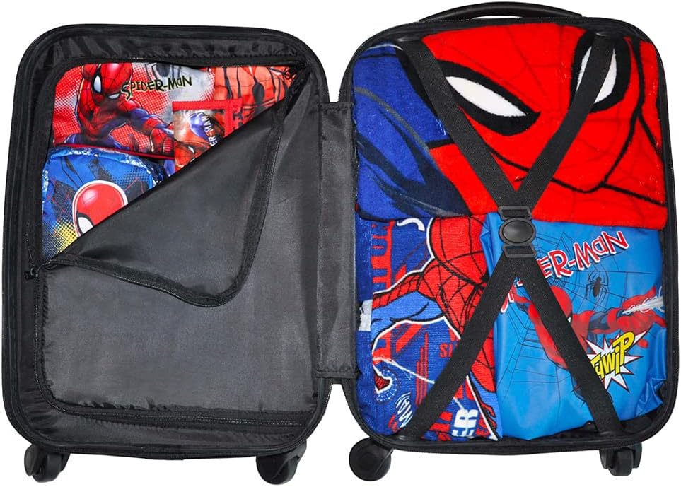ABS/PC Trolley Telescopic handle, soft top handle. Three-digit combination closure. Capacityโฆ 31L. Character printed on both sides. 4 multi-directional sliding wheels. Soft rubber edges. Inside zip compartment and compartment with crossover strap Zip pocket Matching lining
