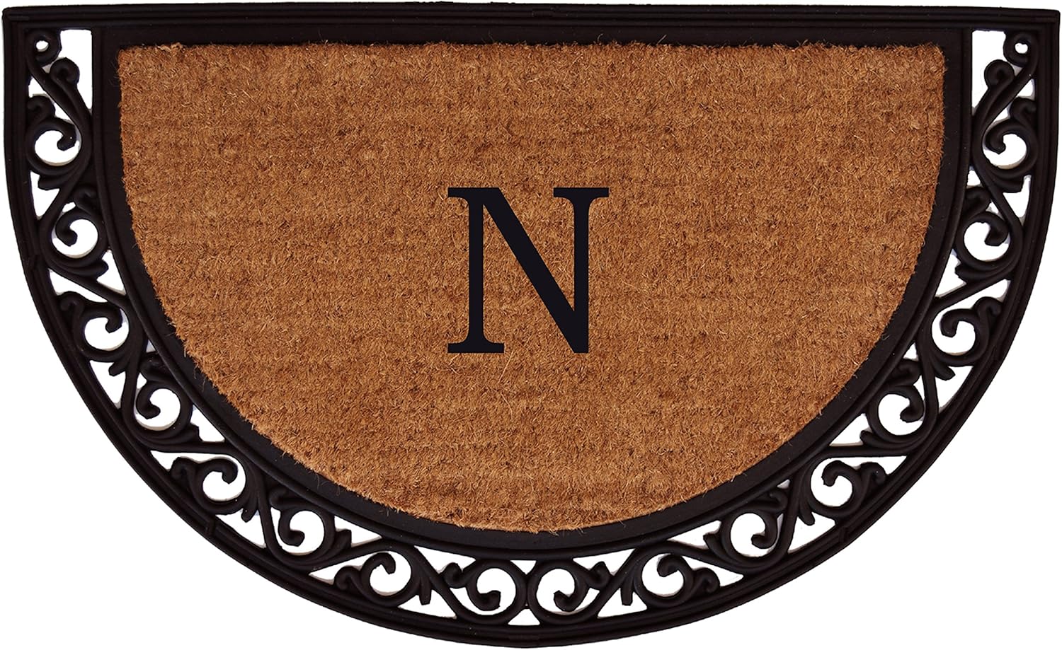 The beautiful combination of coir and rubber in this over-sized arch doormat makes an attractive, yet durable reception for your guests. Heavy-duty rubber adds weight to this elegant monogrammed mat while the coir acts as a natural scraper on shoes.
