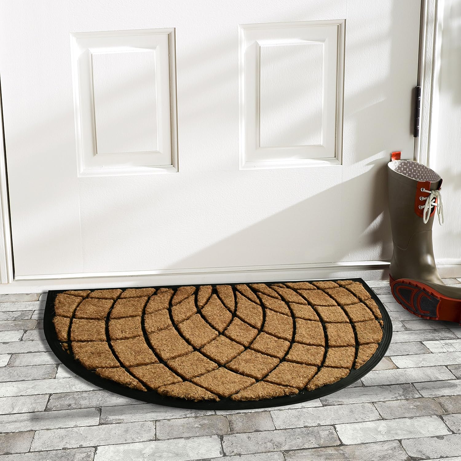 Over-sized to provide more coverage, this beautiful combination of coir and rubber make a stylish, yet durable reception for your guests. While the heavy-duty rubber adds weight and elegance, the coir acts as a natural scraper on shoes to keep debris from entering your home. Sweep or hose clean.