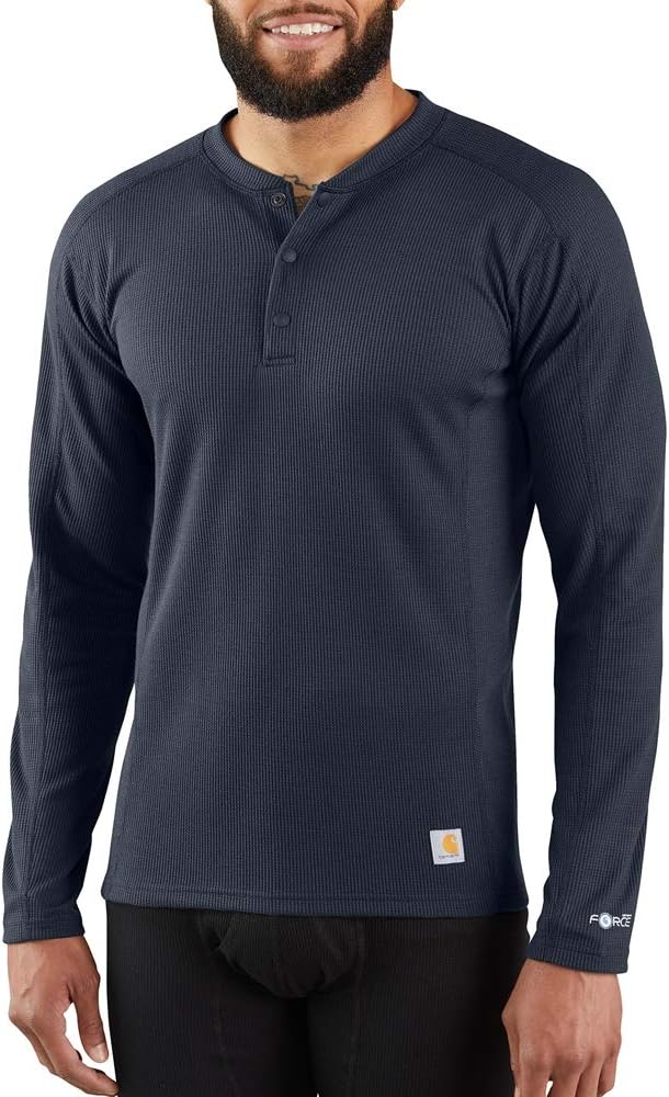 This mid weight Carhartt force base layer features a three-snap henley collar and classic waffle knit fabric that traps your body's heat on those cold days. Rugged flex fabric moves with you and fast dry technology wicks away sweat. Smooth flat-lock seams and tag less label enhance comfort. The concealed thumb loops keep your sleeves in place when you put on another layer. This base layer Top works as hard as you do to keep you warm, dry, and odor free throughout the work day.