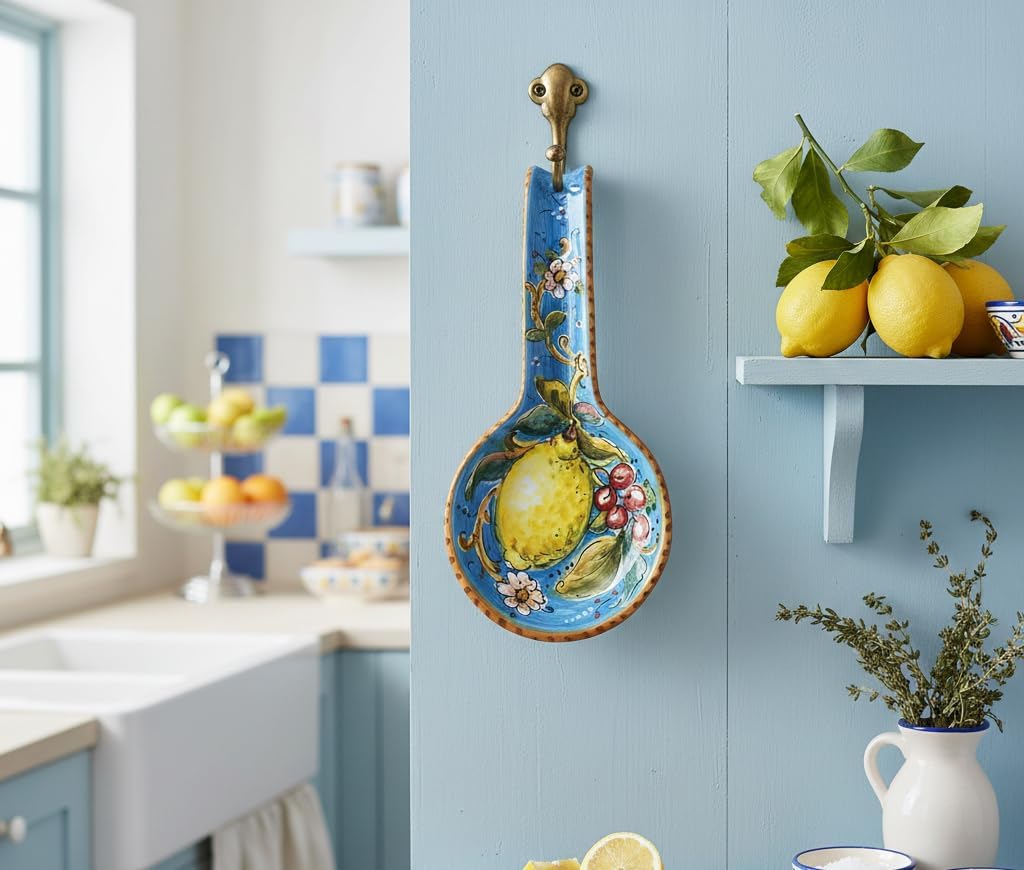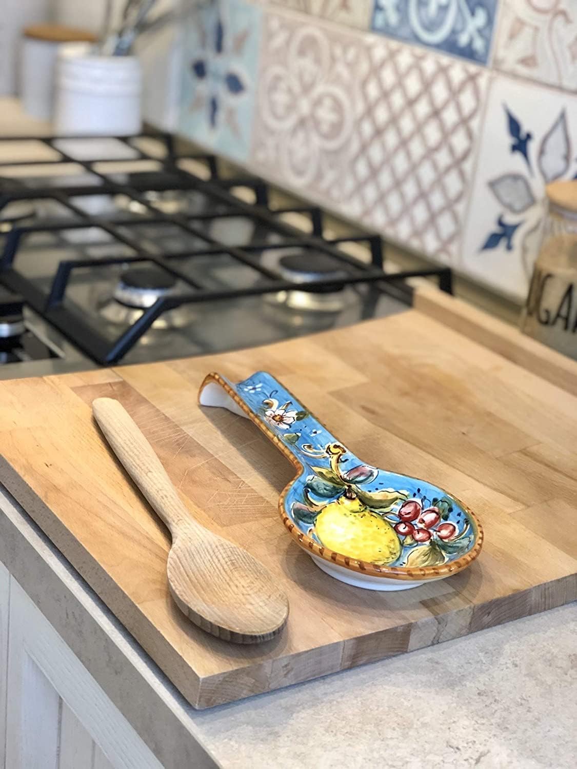 THE TOTAL PRICE INCLUDES CUSTOMS DUTY TAX PRODUCT INFORMATIONCeramic spoon rest .Decoration: :Collection Amalfi lemons ; this design is marked with the colors of the Amalfi coast, with the famous lemons that characterize it, a small lock of grapes, leaves and flower, on a turquoise background like the sea of the Amalfi coast, orange borderDimensions: 11,02 Inch x 4,72 Inch PRODUCT INSTRUCTIONSAll our products are lead-free and can be used for foods and can wash in the dishwasher