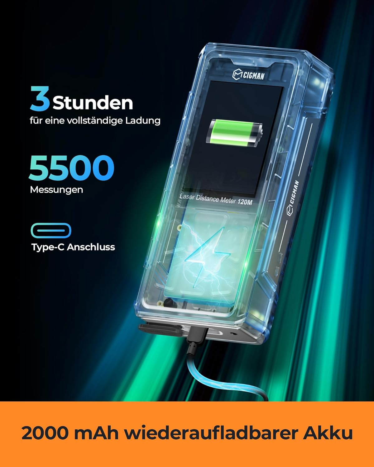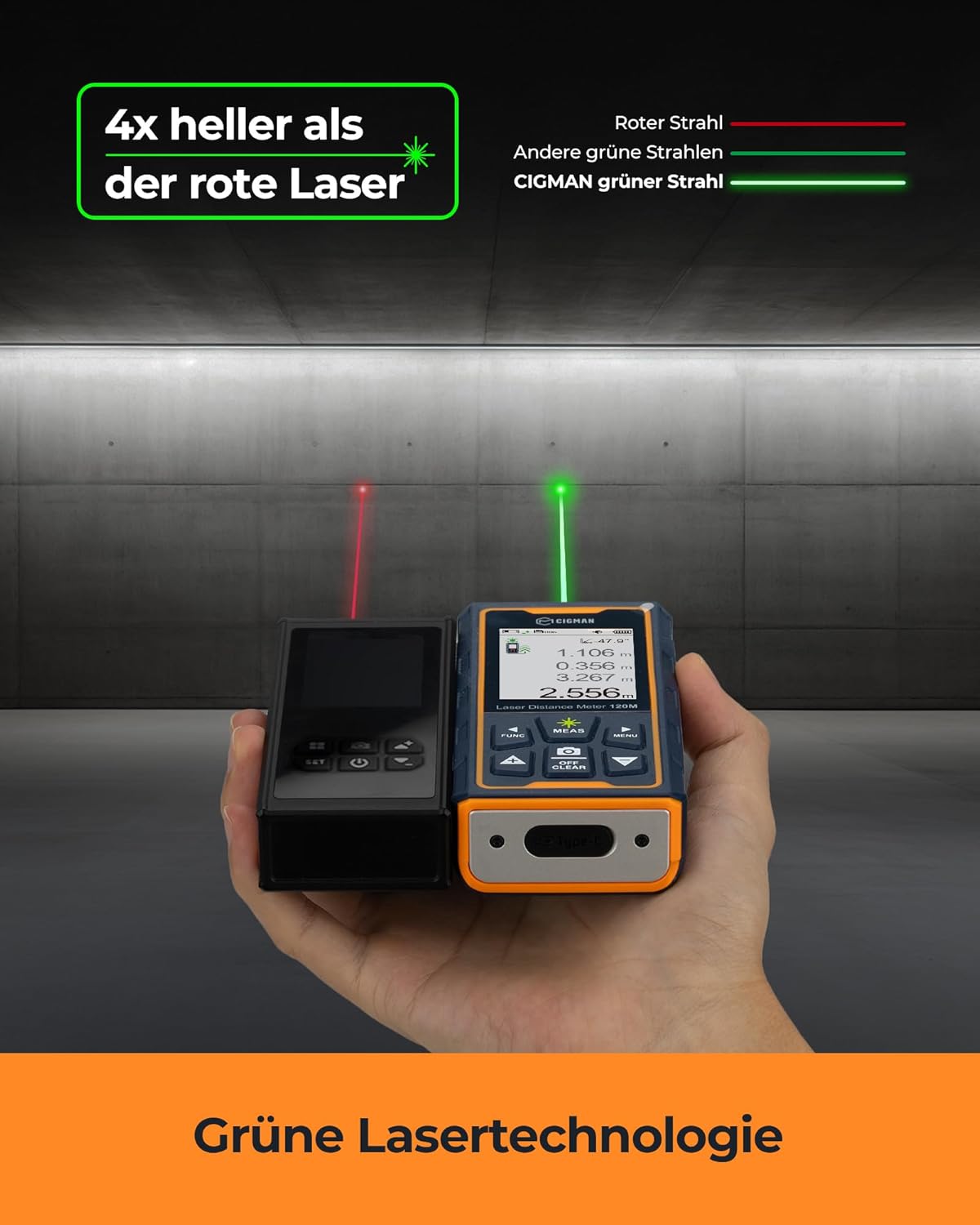 Laser Measuring Tool, CIGMAN 393ft Green-Beam Laser Measure, Outdoor Laser Measurement Tool with 4X Camera, P2P Technology, IP68, Rechargeable Laser Distance Meter, Length, Area, Volume, Angle SensorCIGMAN 59-inch Lightweight Adjustable Laser Level Tripod with 3-Way Swivel Pan Head, Bubble Level, Phone Holder, Quick Release Plate with 1/4" Screw Mount & 5/8" UNF Adapter Nut, Camera & Phone TripodSafety level-Class II, <1mW power output