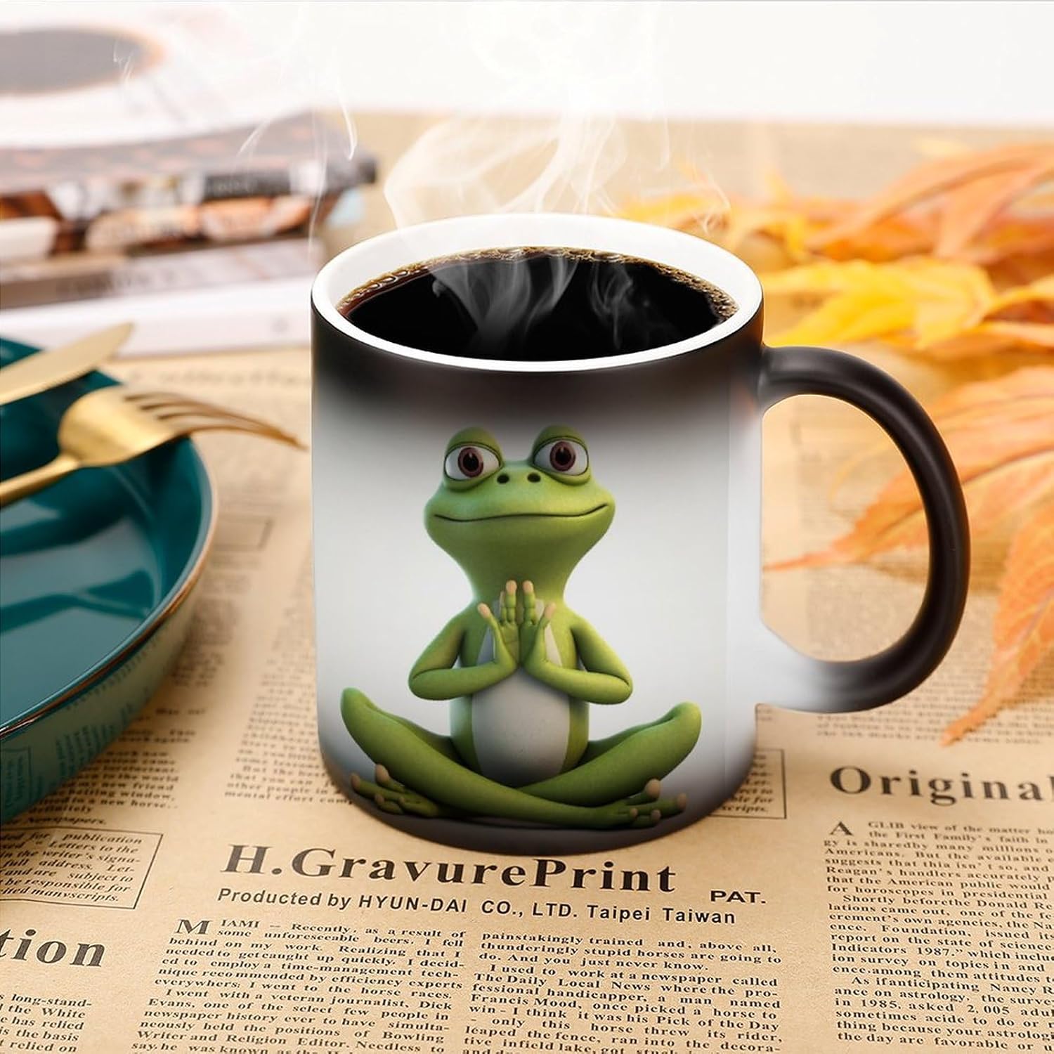This unique color changing cups is easy to clean, Please scald it with boiling water before using it after receiving it to remove the dust generated during the production process of the cup. It is reusable, Not suitable for dishwashers, only hand wash The The Funny Frog Doing Yoga printed reusable color-changing cups are perfect for decorating your kitchen, restaurant or cafe. You can judge whether the coffee is cold by the color of the magic cup, so as to avoid drinking cold coffee