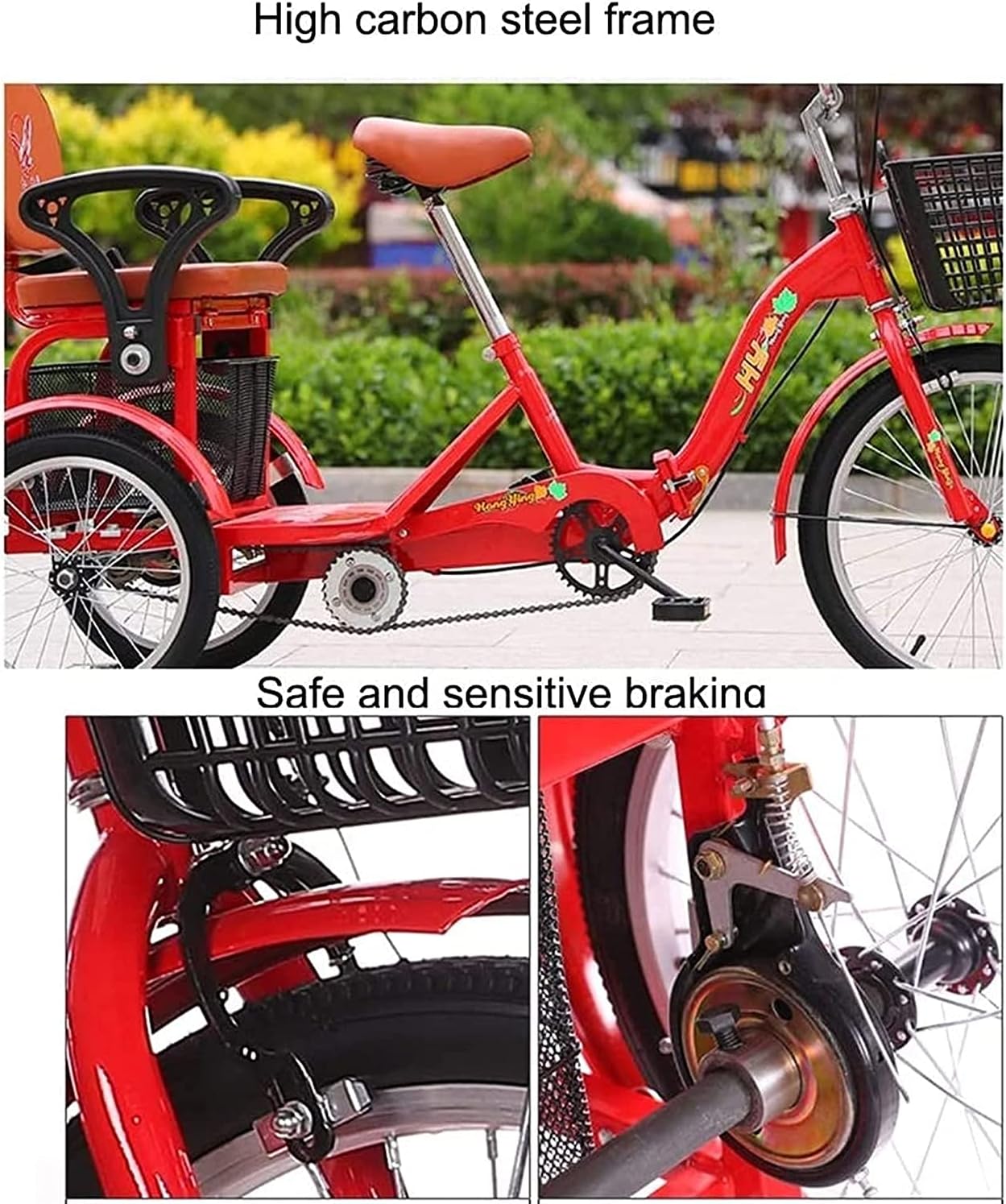 ※(. ? ? ?)※ Bicycle is the best gift for parents and family. Your wife can use it to pick up and drop off children. ※(. ? ? ?)※ Please note: You need to install it yourself, the installation is relatively simple, you can contact us if you have any questions. Since the tricycle is a large product, the product may be slightly scratched during transportation. If you mind, please don't buy. Parameter: size: length 166*width 66*height 100 CM Front wheel diameter: 20 inches/50CM Rear wheel diameter: 16 inches/40CM Handlebar distance: 85-100CM adjustable Car seat distance: 65-80CM adjustable Rear basket size: 36*36*19CM Scope of application: -aged and elderly people Suitable for the crowd height: 130-170cm tall Gross weight/net weight: 34/32KG Load: 175KG e: High carbon steel e Rim: Aluminum alloy rim Front brake: caliper brake Rear brake: holding brake Advantage: Fully enclosed chain cover, safe and beautiful Exquisite car basket, increase the capacity to accommodate more items High carbon steel e/double chain drive, sturdy and Comfortable seat with seat belt. Dual-drive three flywheels, making it easier for the elderly to ride, and has obtained the national patent certificate Anti-slip wear-resistant wheel set: thick anti-slip wear layer, multi-layer protection of thick tires, environmentally friendly rubber inner tube , Thickened aluminum alloy rim, easily cope with various road conditions Widen the pedal, seal the bottom bracket The package includes: Adult tricycle x 1 Note: You have to install it yourself, but don't worry, it's easy ※(. ? ? ?)※ You can contact us at any time if you have any questions in the process of buying products, we will ask you to answer your questions, and hope that you have a happy shopping and bring you a happy shopping experience!