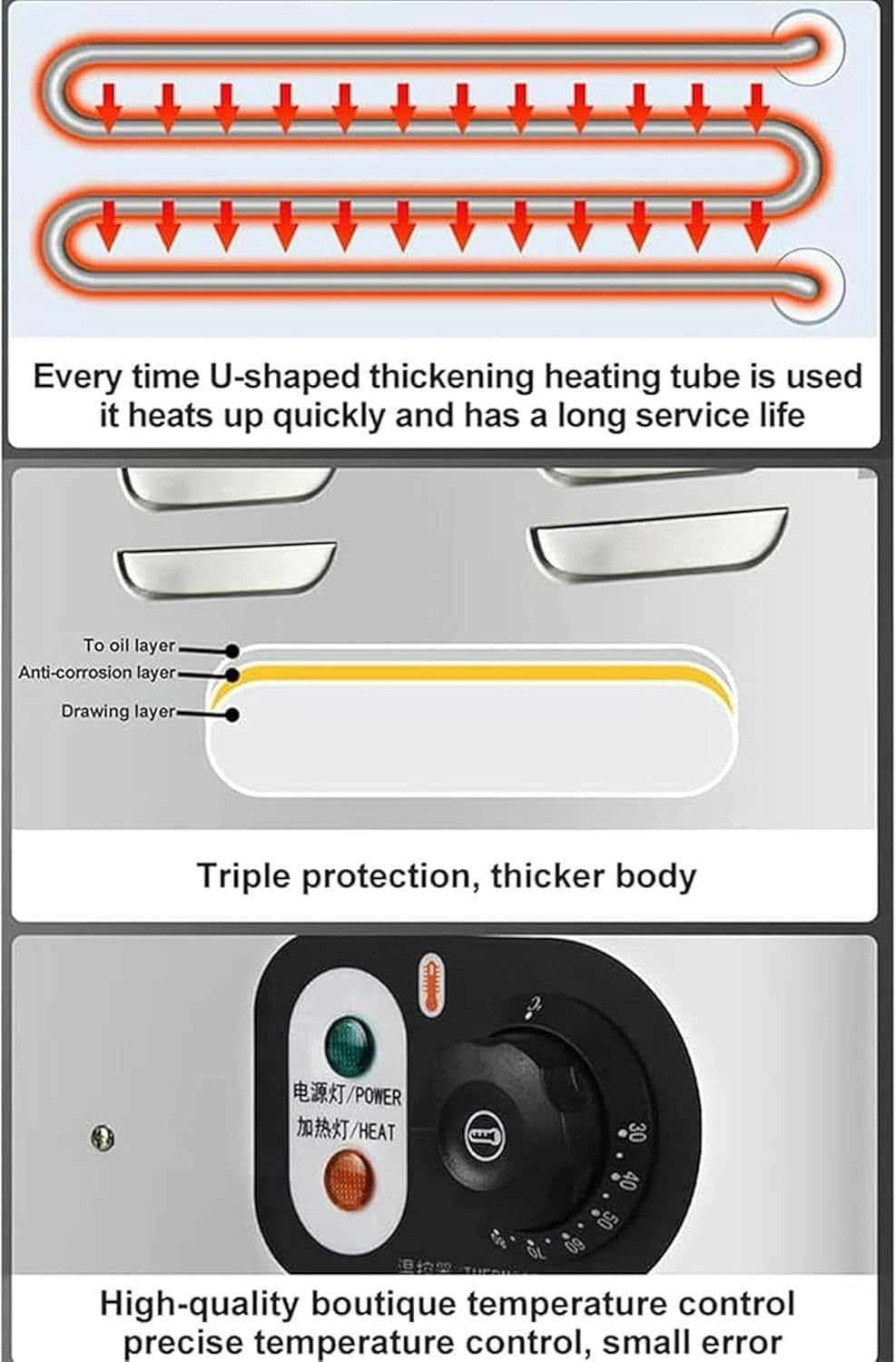 Features: equipped with a commercial U-shaped thickened heating tube for quick heating and a long service life. The anti-scald handle prevents direct contact with the body, avoiding burns. The built-in intelligent temperature control ensures better production control. The intelligent numerical control panel allows for accurate temperature control. With a 9L inner tank capacity, it can cook up to 50 eggs at once, including hot spring eggs, soft eggs, and full boiled eggs.Product Name: Egg Warming Machine Body materials: thick stainless steel Voltage: 220V Rated power: 2.6KW Temperature control range: 30-110C° Gross weight: 6KG Internal size: 300*240*150MM Machine size: 365*266*285MMPacking List: 1 * Commercial Egg Boiler