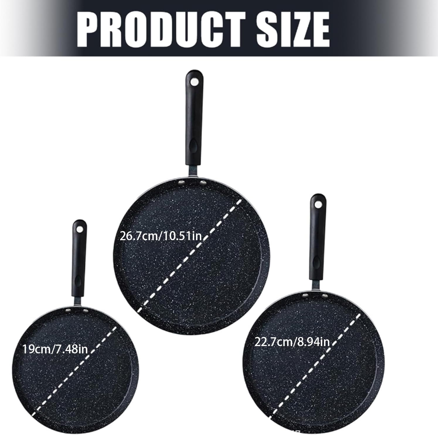 Features: Craft with cast aluminum and a nonstick coating, this 3 piece nonstick frying pan set (6/8/10inch) ensures effortlessly cooking with minimal oil while resisting scratches and stain. Feature cast aluminum construction, ergonomic antislip handle, and coating, these frying pan offer great heat distribution and not fatigue handling for precise kitchen cookware performances. Ideal for home cooking, health individuals seek versatilely breakfast skillets, these pan caters to family sized meal preps or single serving making with their multiple size design. Perfect for crafting pancakes, golden brown , or stir fries, this cookware set exceling in open kitchens and busy morning routines requiring quick cleanups. The scratch resistant surfaces maintains its black finish through daily use, while nest design optimizes storage space in moderns kitchen cabinets or compacts cooking area. Specifications: Component: Aluminum Color: Black Size: As pictures shown. Note: Please allow 1-3cm error due to manual measurement. please make sure you not mind before you bid. Due to the differences between different monitors, the picture may not reflect item's actual color. Package includes: 1pc 10inch Frying Pan 1pc 8inch Frying Pan 1pc 6inch Frying Pan