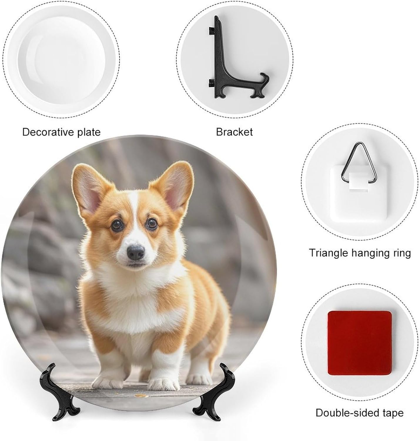Our versatile ceramic Corgi Dogs plates are made of smooth ceramic material. The lightweight bone china plates can be easily placed anywhere you like, showcasing their decorative charm.This bone china dessert plate is available in four sizes: 6 inches, 7 inches, 8 inches, and 10 inches, making it an ideal choice for display items.Personalized decorative plates, perfect for displaying handicrafts, are an ideal choice for home décor. This vertical ceramic plate makes a wonderful gift for housewarmings, anniversaries, weddings, birthdays, Thanksgiving, New Year's, or any holiday.This French country-style ceramic plate is suitable for decorating or using in living rooms, offices, hallways, dining rooms, entrances, hotels, holiday homes, and other places.