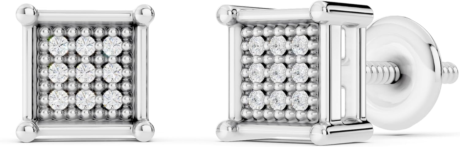 This lovely Square Earrings features 0.06 Carat Round Natural White Diamond(s) in Prong Setting.All diamonds are Sparkling.Our product includes a complimentary jewelry box for safe storage and presentation.SKU # K1829-925-P