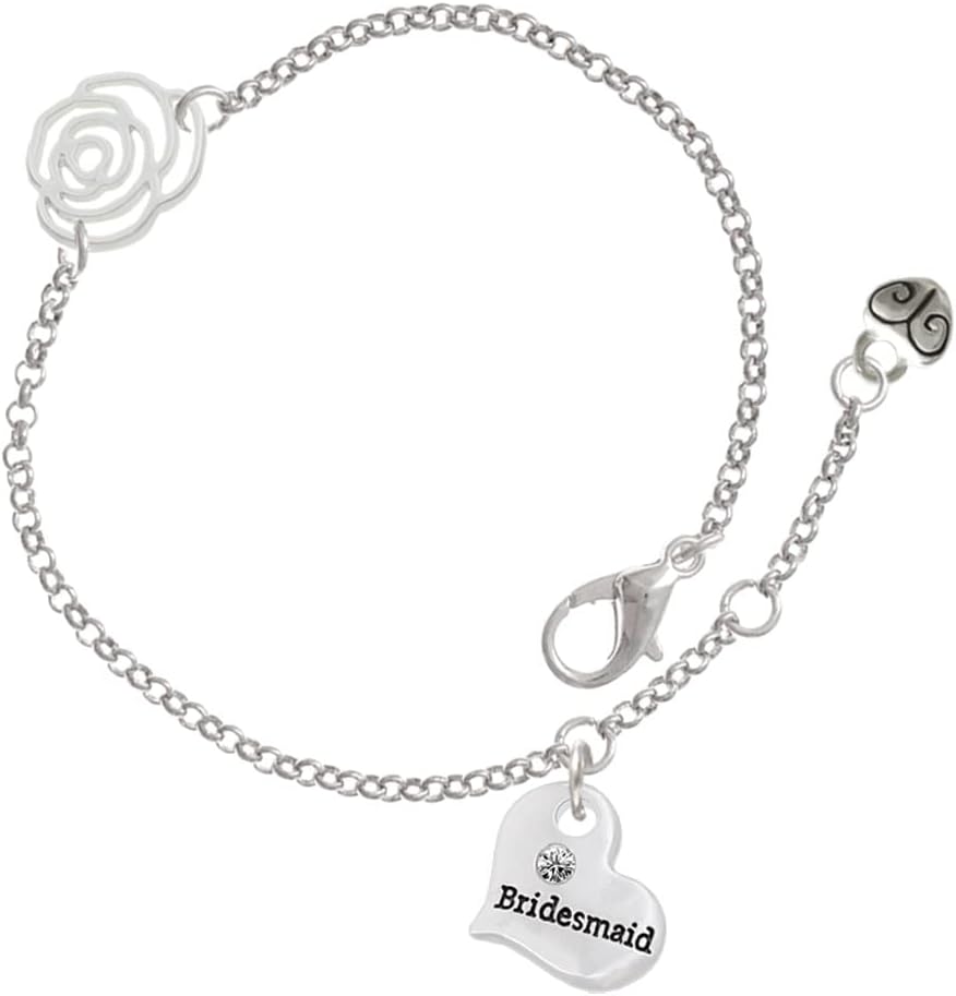 Small Rose Outline Link is approximately 0.46 x 0.54 x 0.06 inches (HxWxD). Silver-tone Rose Link Charm Bracelet, 6.25 inches long with 1.75" Extender chain. Chain is approximately 2mm in diameter. Lobster clasp clasp. Roses are beautiful symbols of love, beauty, hope, and commitment. They hold special meaning in Christianity, Judaism, Islam, and Hinduism. This adult charm bracelet makes a wonderful gift to represent spring, devotion, wisdom, and faith. PLEASE NOTE: Our products are not intended for children 14 years and younger.