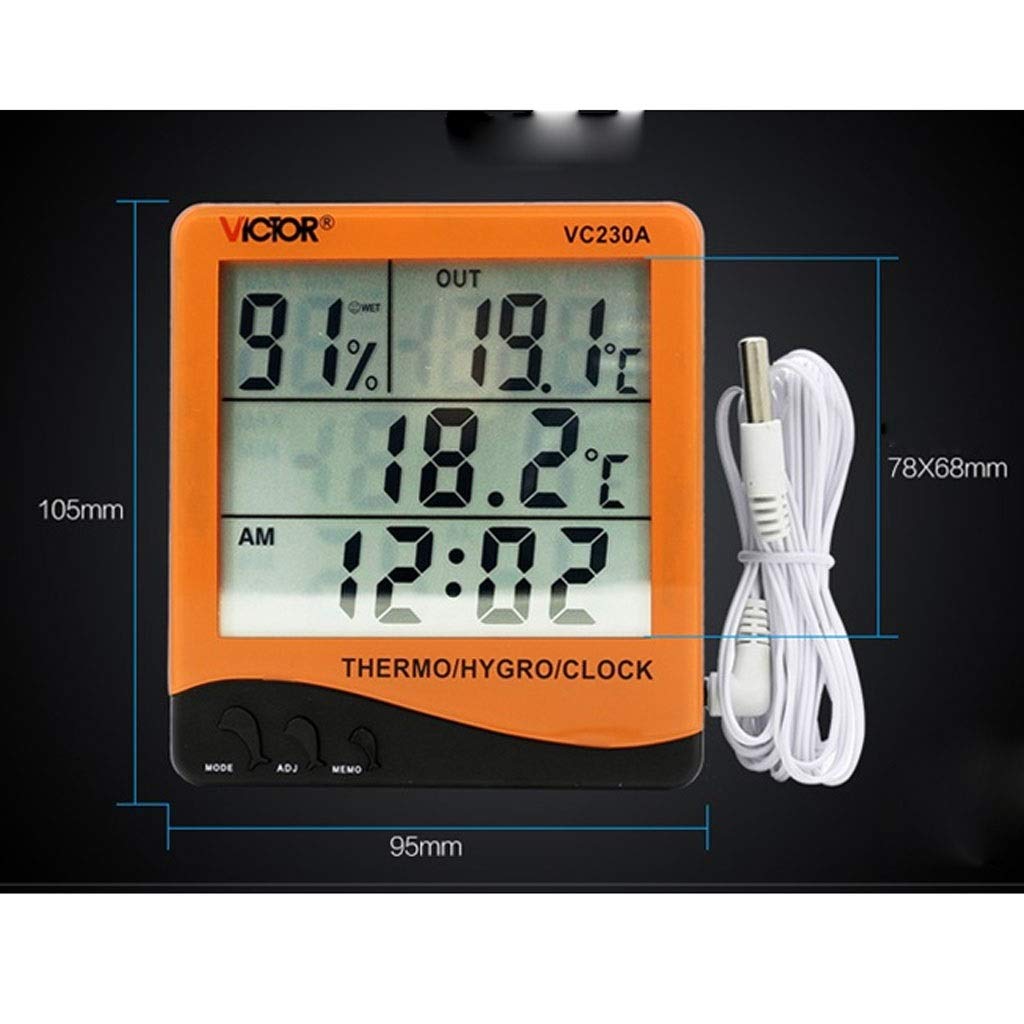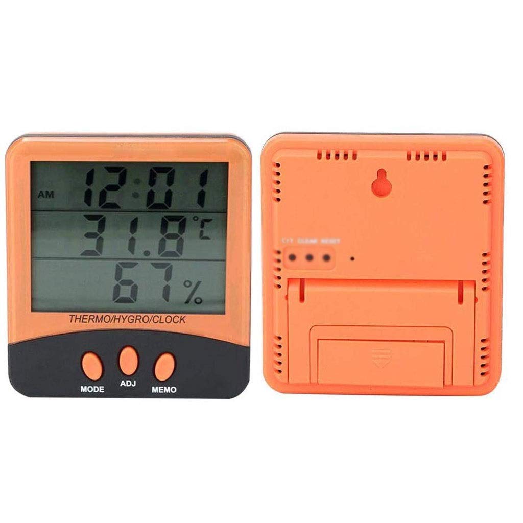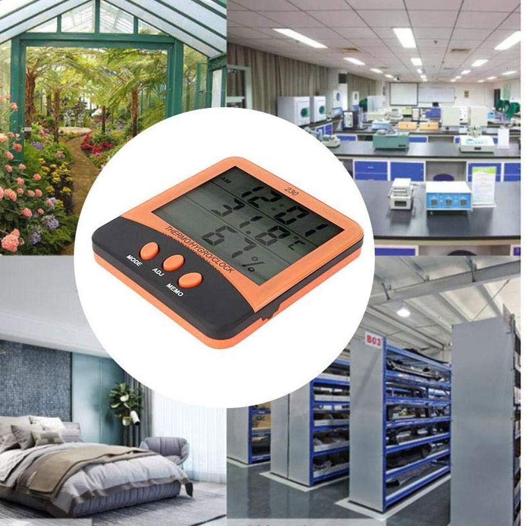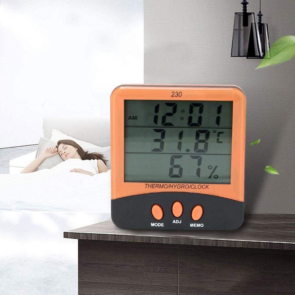 Specification:Environmental comfort level display: "COMFORT", "WET", "DRY"Temperature measurement range: 0~50℃ (32~120℉)Temperature accuracy: ±1.0℃ (1.8℉)Temperature resolution: 0.1℃ (0.1℉)Humidity measurement range: 30%~90%RHHumidity accuracy: ±5%(40%~80%), other ±8%Battery: 1 * 1.5V AAA battery (NOT included)Operating temperature: 0~50℃Package list:1 * Thermometer Hygrometer Alarm Clock1 * User ManualThe thermometer for house features a clear LCD display with large bold numbers, allowing you to read the digital from any angle. The hygrometer digital is lightweight, compact, and easy to carry