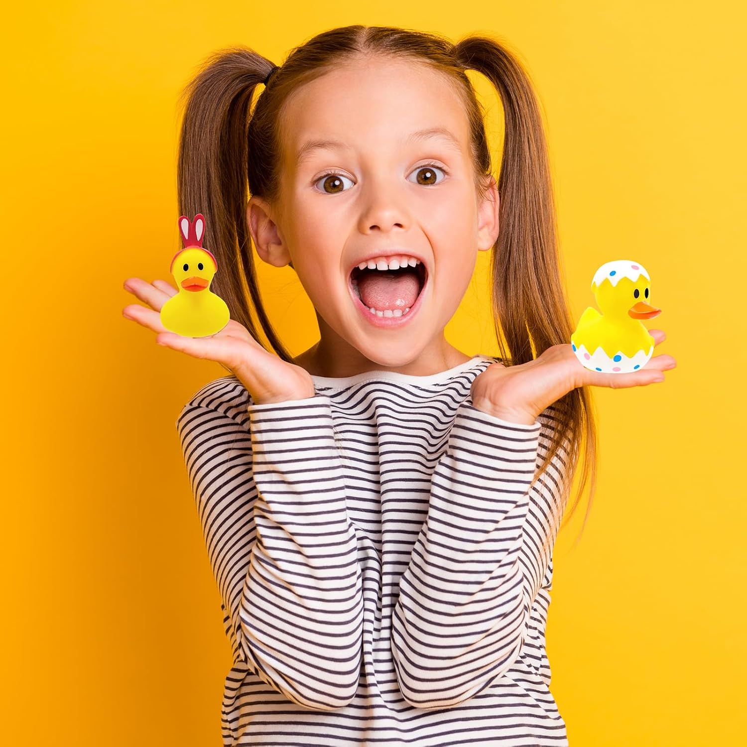 The Dreidel Company Happy Easter Rubber Duck Toy Bunny Rabbit Duckies for Kids Easter Eggs, Bath Birthday Gifts Baby Showers Summer Beach and Pool Activity, 2" The Happy Easter Rubber Ducks Assortment features a variety of Bunny Rabbit Characters for Kids Easter Eggs! They are great for playing with children, especially preschoolers, during birthday parties, school carnivals, or parties. Your kids will be entertained for hours. The Happy Easter Characters Assortment are designed in all different Rabbit Characters which make the perfect gift and decoration for any kids’ party. Adds Fun and Atmosphere to your party that will leave good memories to all your guests! They are wonderful Party Favors and Baby Gifts for Birthday Parties, Carnival Prizes, Stocking Stuffer, Pool Toys, Classroom Rewards, Goodie bag Fillers, and much more! The Bath Toys Characters are 2” and made from Vinyl which is long-lasting and safe for children! Your kids will love bath time from now on! Our Multicolor Rubber Ducky Baby Toys come in a 12-Pack! Great For sharing with friends and family.