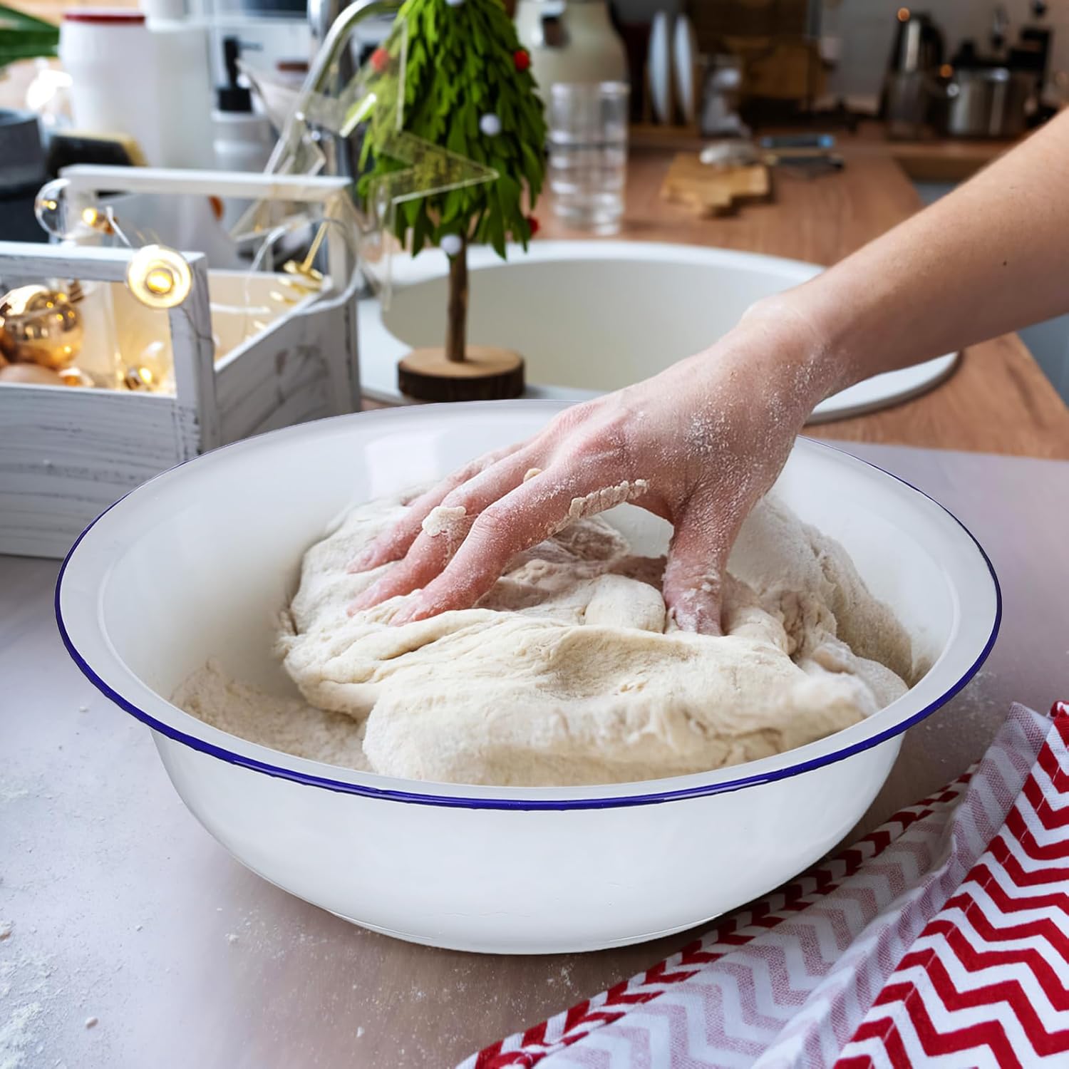 Features-Color: White-Material: Enamel-Size: 34.00X34.00X10.00cm/13.36X13.36X3.93in Package Including1 x Enamel bowl