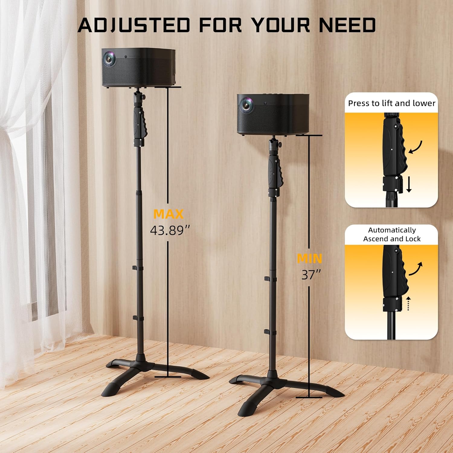 ETHU Projector Floor Stand, One-hand Height Adjustable Projector Stand Tripod with Safety Lock, Tall Projector Floor Stand Mount with Heavy-Duty Construction for Home Theater Studio Stage Office Use