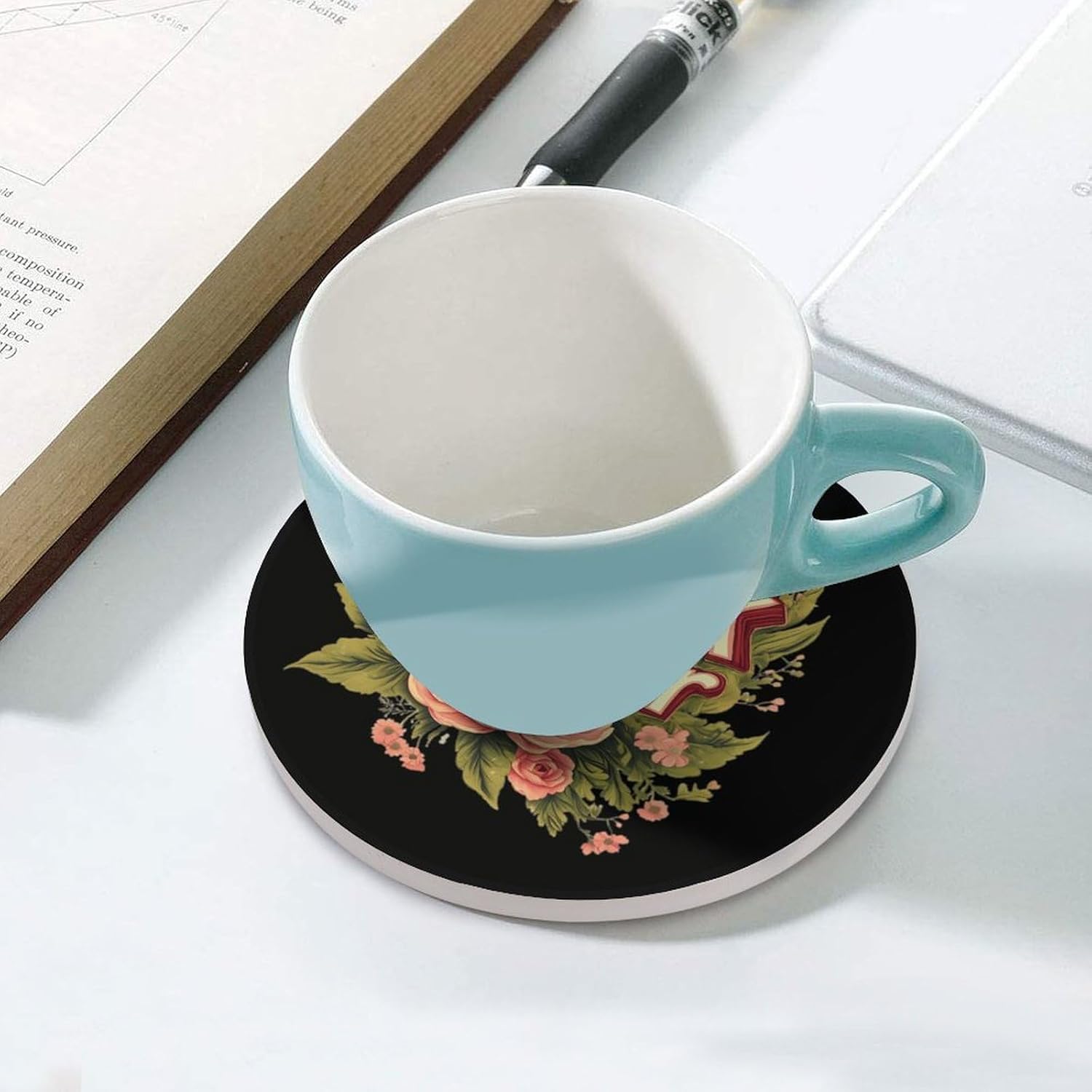 Ceramic Coaster with Cork Base Funny Absorbent Coasters Set Suitable for Kinds of Cups, the absorbent ceramic coasters comes with vibrant color and beautiful design, goes with everything