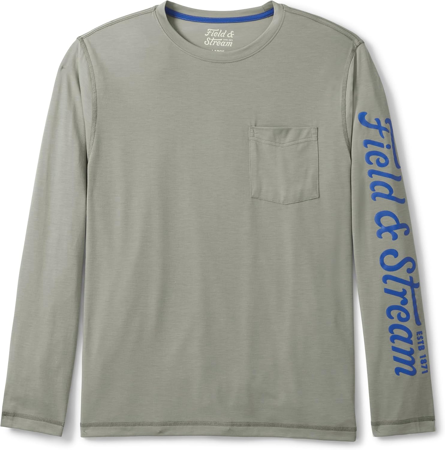 For long-sleeve comfort throughout the day, our Long-sleeve Performance Tee Shirt is always ready for go-time from fishing to hunting and everything in between. Makes a great layer under your hoodie or overshirt but looks great on its own with a left chest pocket and sublimated Field & Stream graphic down the left arm. Temperature regulating materials, reinforced stitching, forward-front seam for added comfort on your shoulders and a custom fit for ease of movement. UPF 50, temperature regulating materials with 4-way stretch, drirelease custom fabrication for added cooling and moisture wicking – keeping you dry, comfortable and protected all day long.