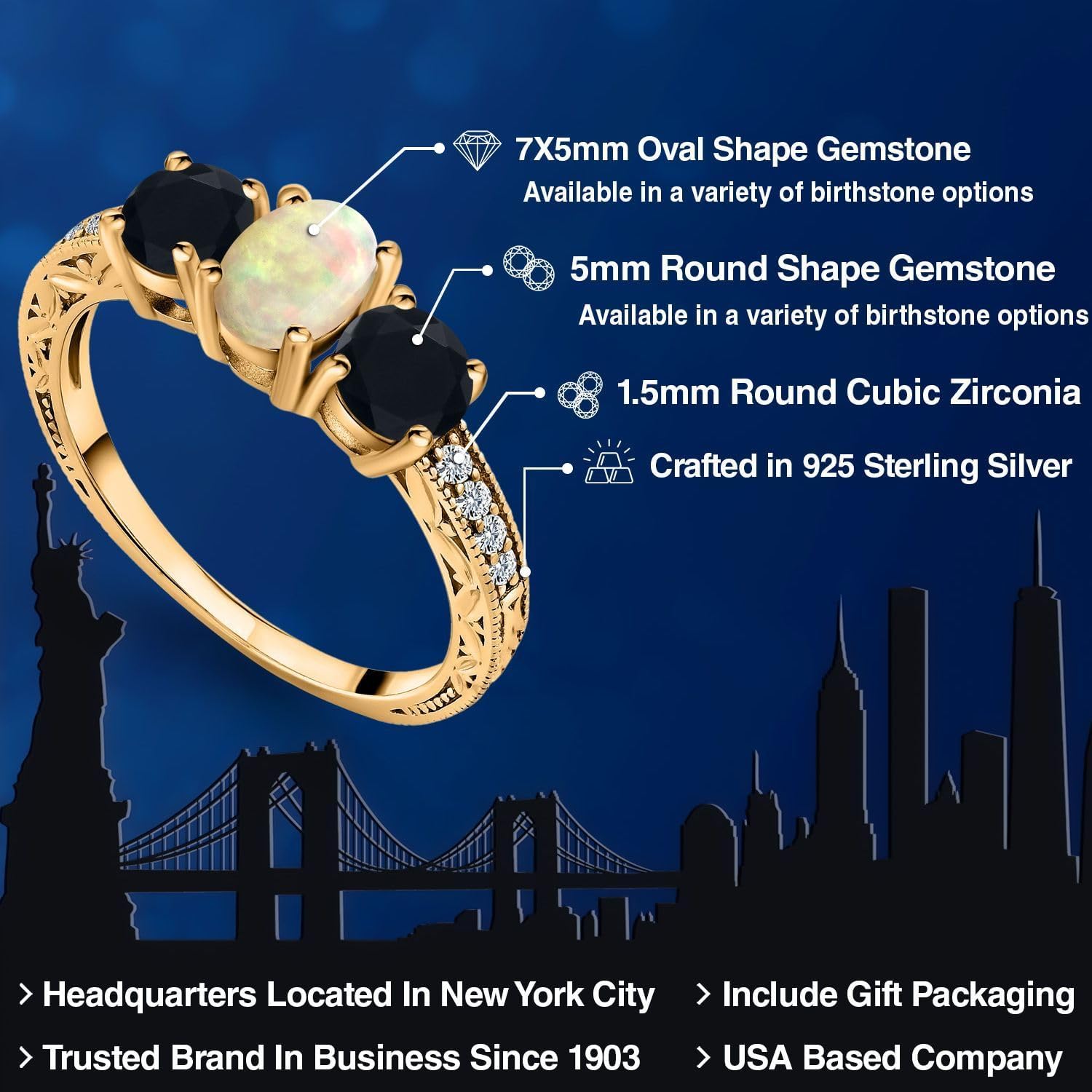 | Gem Type | Cubic Zirconia, Ethiopian Opal, Onyx |