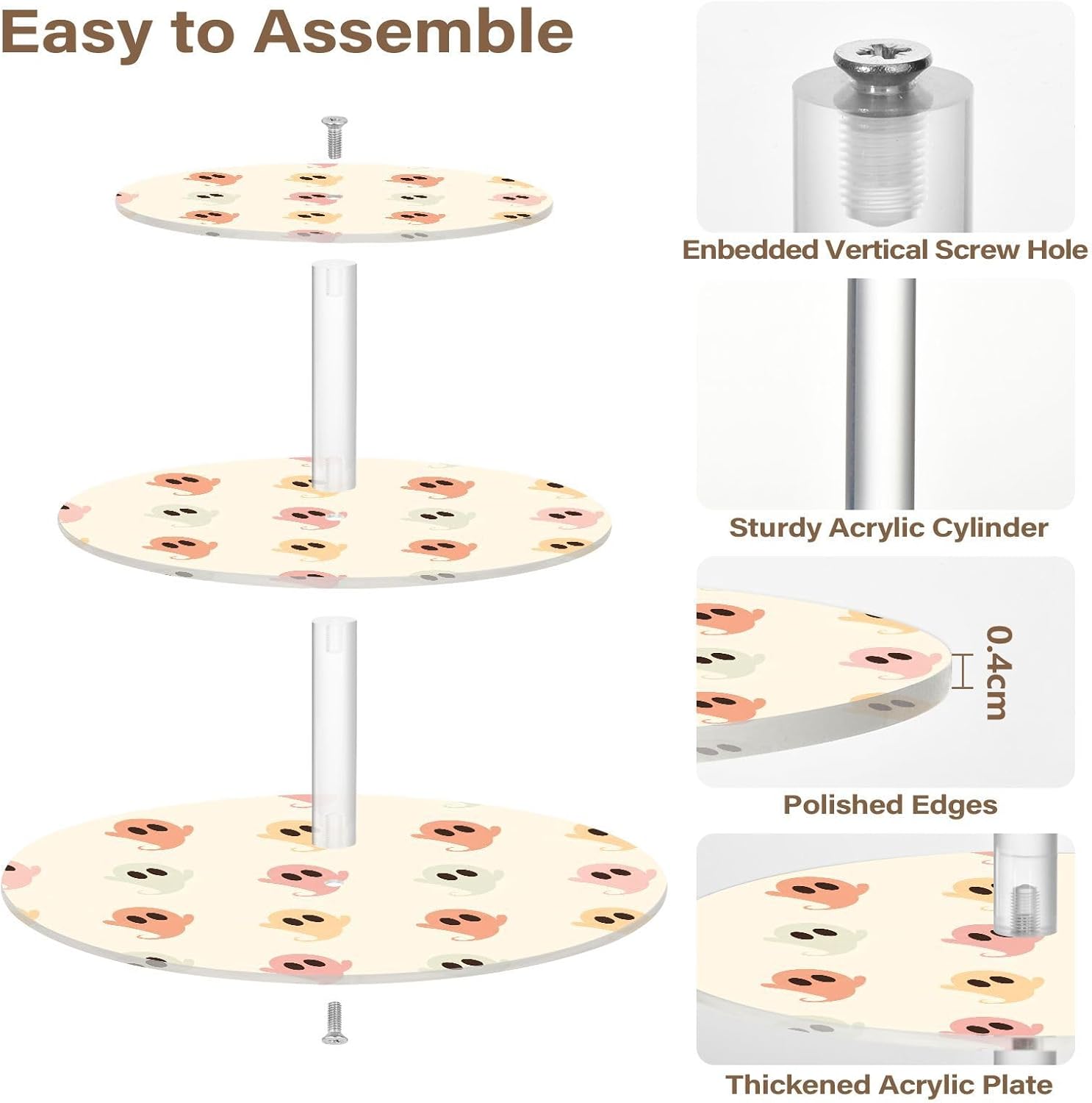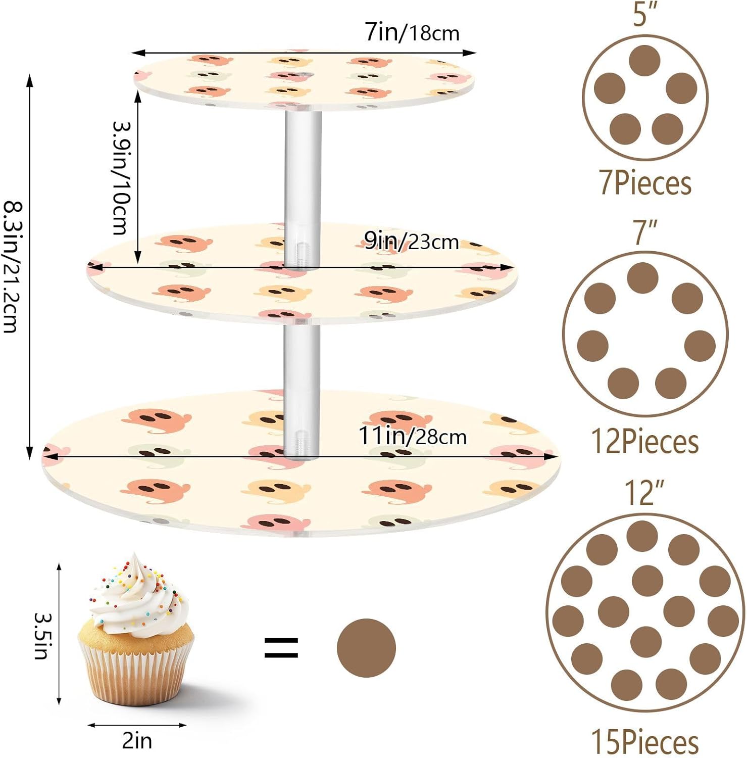 3 tiers round cupcake stand,acrylic cake tower stand holder macaron display rack cookie candy buffet desserts platter with non-slip and stable base for wedding, birthday, theme party. Due to the difference between different monitors,the picture may not reflect the actual color of the item,Please allow the slight color difference! We always doing our best to provide the best service and reliable products for every customer,Thank you very much! Have a good day!