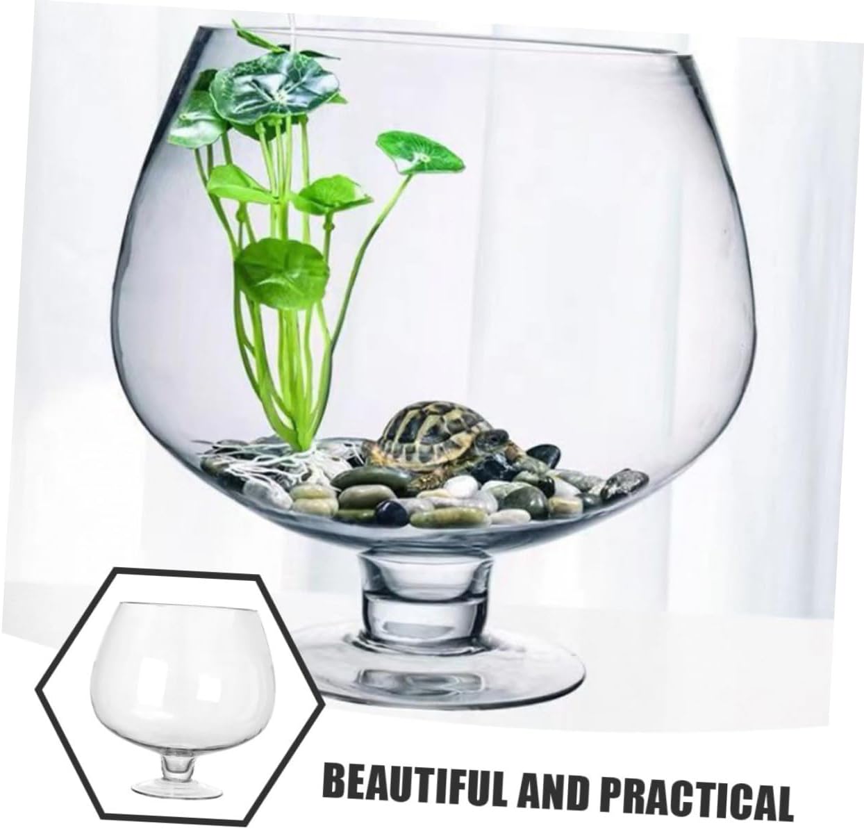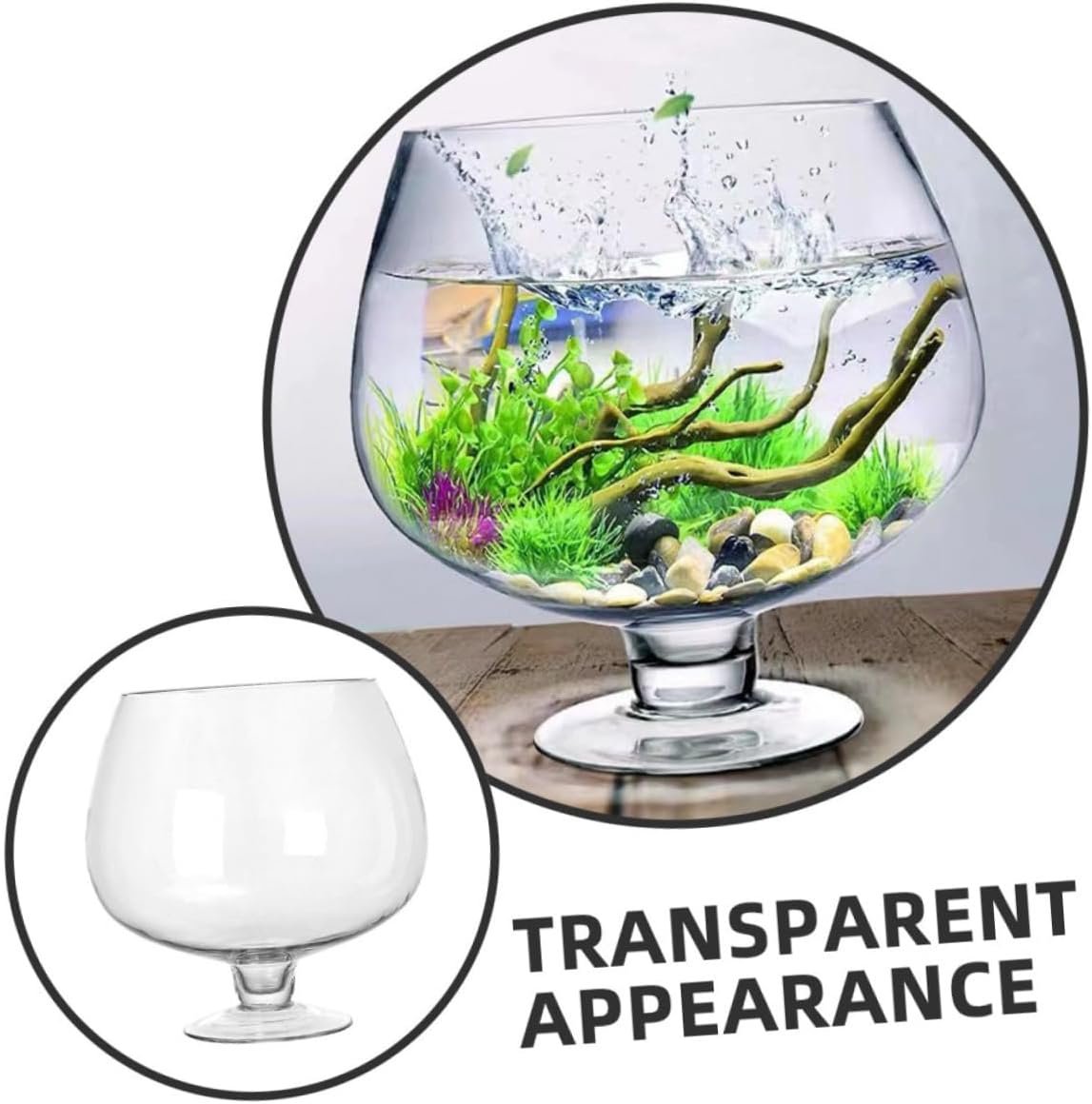 Package List 1 Tank Features -Versatile functionality: use it as a decorative fish tank, a flower vase, or even a wine glass, offering multiple uses tabletop aquarium tank -Ideal for small fish: ideal for small fish like bettas and goldfish, this tank provides a comfortable and visually appealing habitat for your aquatic pets small fish tank -Capacity: about 5000ml decorative aquarium tank -Material:Glass -Compact and portable: it easy to move and place anywhere, from your office desk to your living room table multi-function betta tank -Product Info:Ecological fish tank vase -Size:23.00X23.00X23.00cm/9.04X9.04X9.04in -Dual-use: designed to support both fish and plants, this fish bowl promotes a balanced ecosystem fish vase -Modern: the sleek and transparent fish bowl adds a contemporary touch to any room, making it a stylish addition to home or office multi-function fish tank -Color:TransparentGoods Descriptiondesktop fish tank This small fish tank kit is ideal for creating a mini on your tabletop.fish vase Simply add water, introduce your betta fish, and decorate with aquarium accessories to create a visually appealing and calming environment.transparent aquarium tank Enhance your living space with a transparent betta tank that serves as both a fish habitat and a stylish decor item