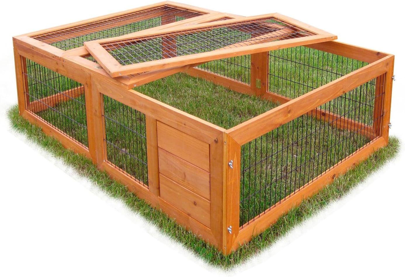 A huge open-air enclosure, which offers not only a rodent space, but also the same number of pets creates a roomy discharge point. Like the model 562 are not only coated wires, but also embedded into the wood, which creates a special stability and also protects against the attempt of the rodent. The free-running corral offers the same 3 removable lid and thus always optimal access to the entire enclosure. The stable processing ensures that the outlet is particularly weather resistant and secure the rodents offers a beautiful variety of hot days. Measures 147 cm length by 98 cm width by 40 cm height.