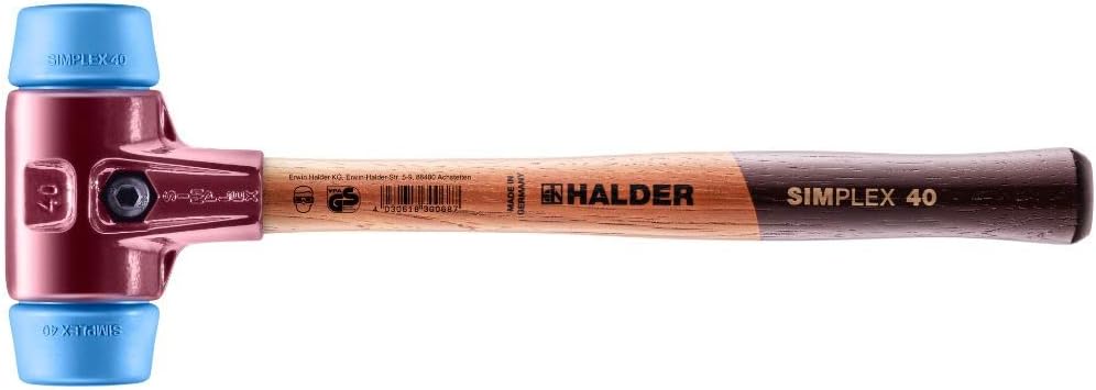 This SIMPLEX series 3001 is equipped with the blue TPE-soft insert (series 3201) on either side. This insert is the softest insert of the SIMPLEX line and offers strong impact cushioning for work requiring a light touch. Unlike conventional rubber mallets, it does not leave behind any undesired black marring. Made of cast iron, the housing comes with an integrated handle protection sleeve that provides for a high level of break resistance. Damping vibrations and shaped ergonomically, the high-quality wooden handle has a double coat of varnish in the grip area and is thus resistant to dirt. In line with the smart SIMPLEX principle, all components are replaceable and can be retrofitted. This translates to savings in both money and resources.