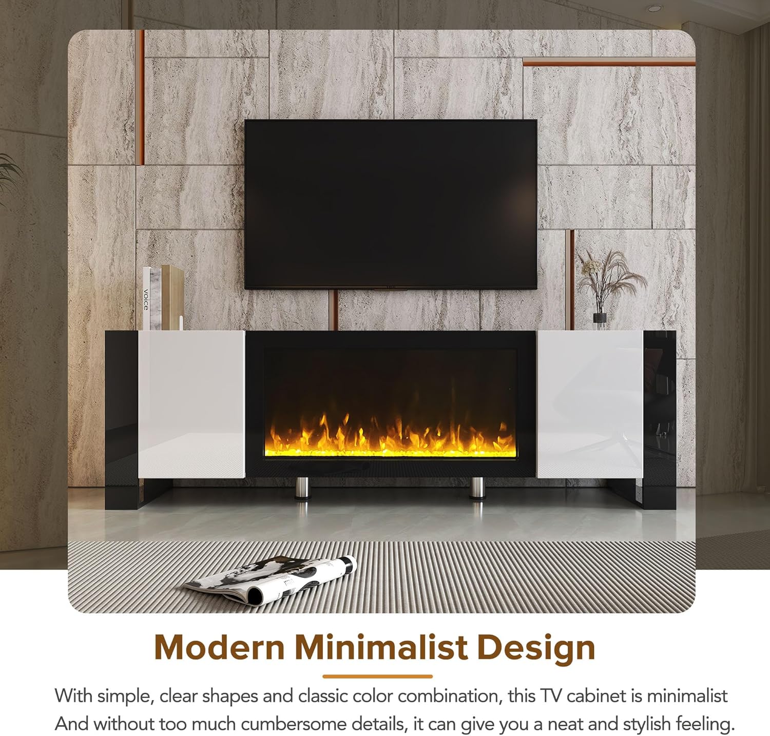 Top Material MDFTop Finish Application VeneerBase Color BlackBase Material MDFBase Finish Application UV VeneerWeight Capacity Overall: 176LBS / Fireplace Cabinet Countertop: 88LBS / Storage Cabinet Countertop: 66LBSDetailed Measurement Overall: 68.1''W x 13.7''D x 21.6''H / Cabinet: 15.8''W x 12.5''D x 7.9''HCountry of Origin ChinaCabinets Included YesNumber of Cabinets 2Table Top Thickness 0.59 inchClearance - Floor to Bottom 3.9 inch
