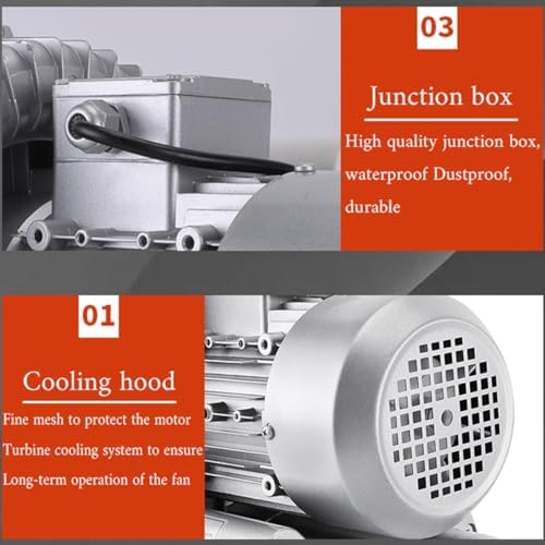 The Regenerative Blower 110V High-Pressure Vortex Blower is an exceptional solution for a wide range of applications, including textile production, pond aeration, hotel room ventilation, and paper printing. This versatile blower excels in both blowing and suction tasks, making it a valuable addition to any workspace. Crafted from durable aviation aluminum and featuring a pure copper coil, this high-pressure blower is built to withstand demanding environments while ensuring optimal performance. With a motor speed of 2980 rpm, it delivers powerful airflow, available in various wattages (120W, 180W, 250W, 350W, 370W, 550W, 750W), catering to different industrial needs. Designed for flexibility, this blower operates efficiently under a wide temperature range, from -40°C to 40°C for working conditions and -40°C to 80°C for inlet temperatures, allowing it to perform reliably in diverse settings. The adjustable air outlet direction enhances its usability, providing convenience whether you need to blow air or create suction. Energy-efficient with a Level 2 consumption rating, this blower not only saves power but also contributes to a more sustainable workspace. Each package includes the blower and a user-friendly English manual, ensuring effortless setup and operation. Choose the Regenerative Blower 110V High-Pressure Vortex Blower for a reliable, high-performance solution that meets your industrial demands while enhancing productivity. Experience the benefits of a powerful blower designed for modern applications.