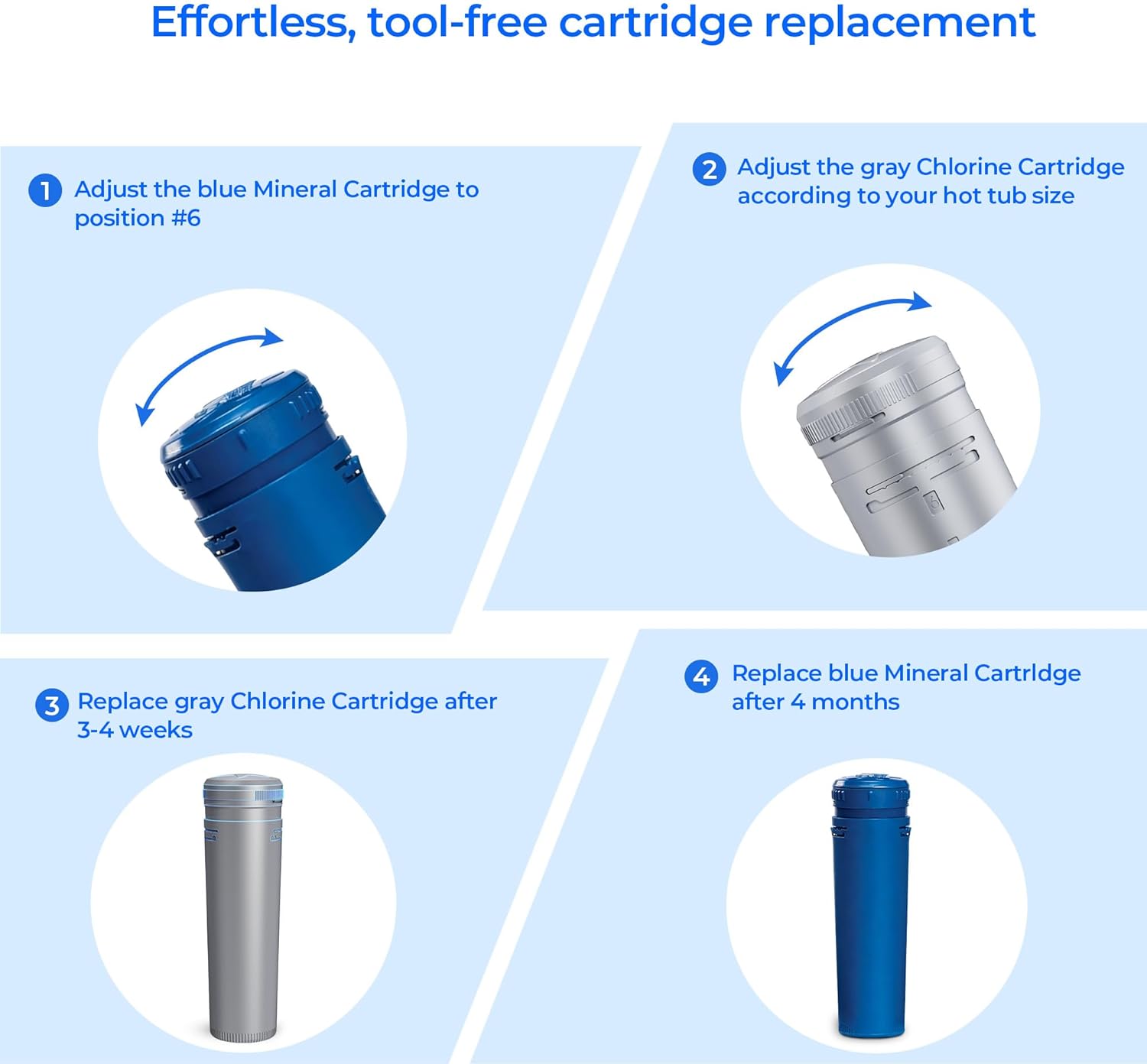The prefilled design helps maintain a stable, low free-chlorine level, delivering water that is cleaner, clearer, and softer to the touch. Reduces harsh chemical odors and irritation, making routine hot tub maintenance easier and more comfortable.