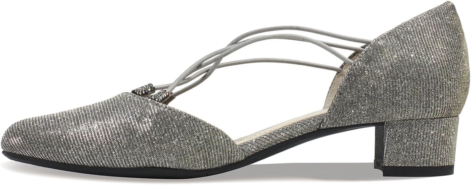 *Dance the night away or simply look ready to be swept up by the rhythm with this chic, heeled shoe *Synthetic upper with glitter and criss-crossing elastic straps *Memory foam insole for added cushion and comfort *1-1/4" block heel